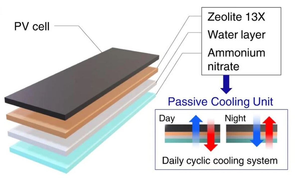 Jak wyjaśniają twórcy tego projektu, ich sposób wykorzystuje Zeolit 13X, czyli materiał glinokrzemianowy służący do desorpcji cząsteczek wody. Kiedy temperatura rośnie, woda jest poddawana desorpcji z Zeolitu 13X i rozpuszcza azotan amonu, wywołując endotermiczną reakcję chłodzenia. Ostatecznie zachodzi odwracalny proces, który prowadzi do odzyskiwania energii nocną porą.