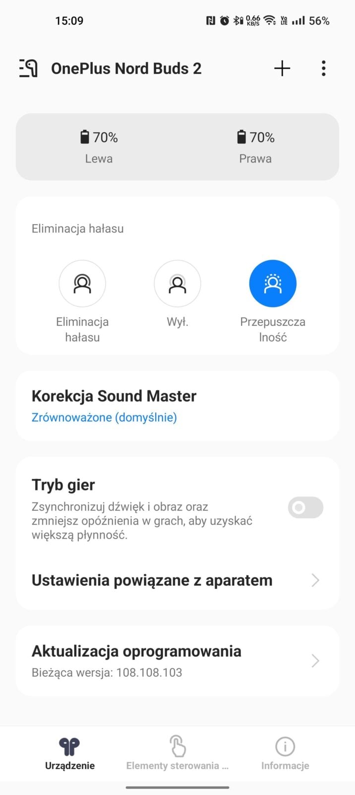 Oprogramowanie HeyMelody dostępne do pobrania zarówno na smartfony z Androidem, jak i iOSem, zdecydowanie powinno wam wystarczyć do dostosowania wszystkich funkcji, które ten model słuchawek TWS oferuje, a tych jest tak naprawdę (niestety) niewiele. Przynajmniej w porównaniu do modeli z wyższej półki, bo przykładowo możecie pomarzyć o czujniku obecności słuchawek w uszach, funkcji jednoczesnego sprawowania z dwoma urządzeniami, czy nawet możliwości regulacji poziomu głośności z poziomu obu paneli dotykowych. To jednak ostatnio plaga wśród słuchawek TWS OnePlusa, bo tej funkcji brakowało też w nowej generacji flagowych Budsów Pro drugiej generacji.