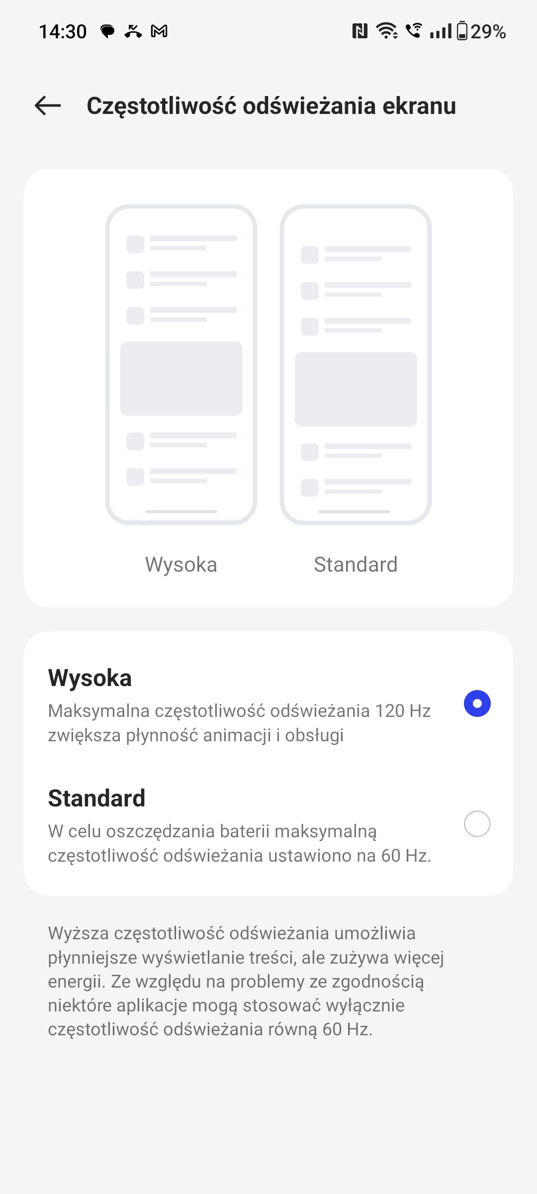 | Ekran | 6,72”, 1080 x 2400 px, 20:9, 391 ppi, LCD, 120 Hz (adaptacyjnie: 30/48/50/60/90/120), kontrast 1500:1, 91,4 % StB, 550 nit / 680 nit w szczycie |
