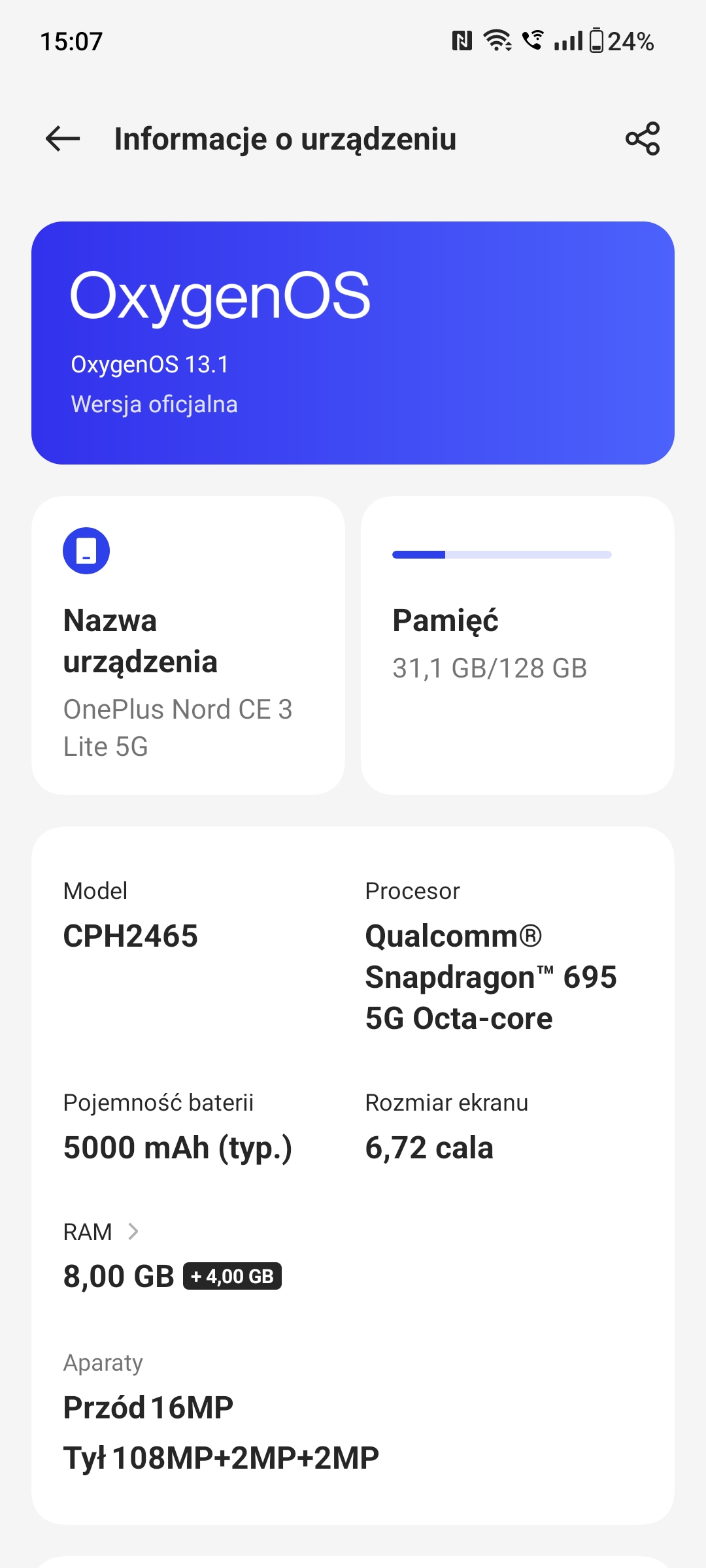 | System operacyjny | Oxygen OS 13.1 / Android 13 |