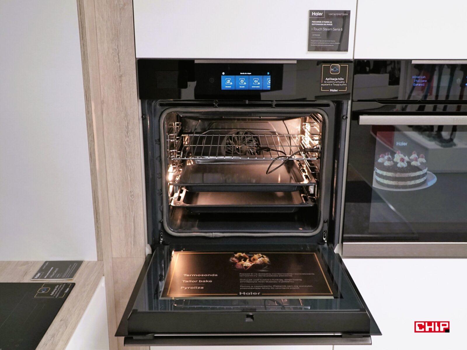 Haier I-Touch Steam serii 6 HWO60SM6TS9BH jest piekarnikiem o pojemności 70 litrów przeznaczonym do zabudowy. Sprzęt zasługuje na miano urządzenia inteligentnego. Jak bowiem inaczej nazwać piekarnik z wbudowaną książką kucharską obejmującą ponad 350 najróżniejszych przepisów? Przy okazji, witamy w XXI wieku, gdzie nawet takie urządzenie może być połączone przez Wi-Fi oraz Bluetooth. Skoro ma być częścią inteligentnego domu nie może być inaczej.
