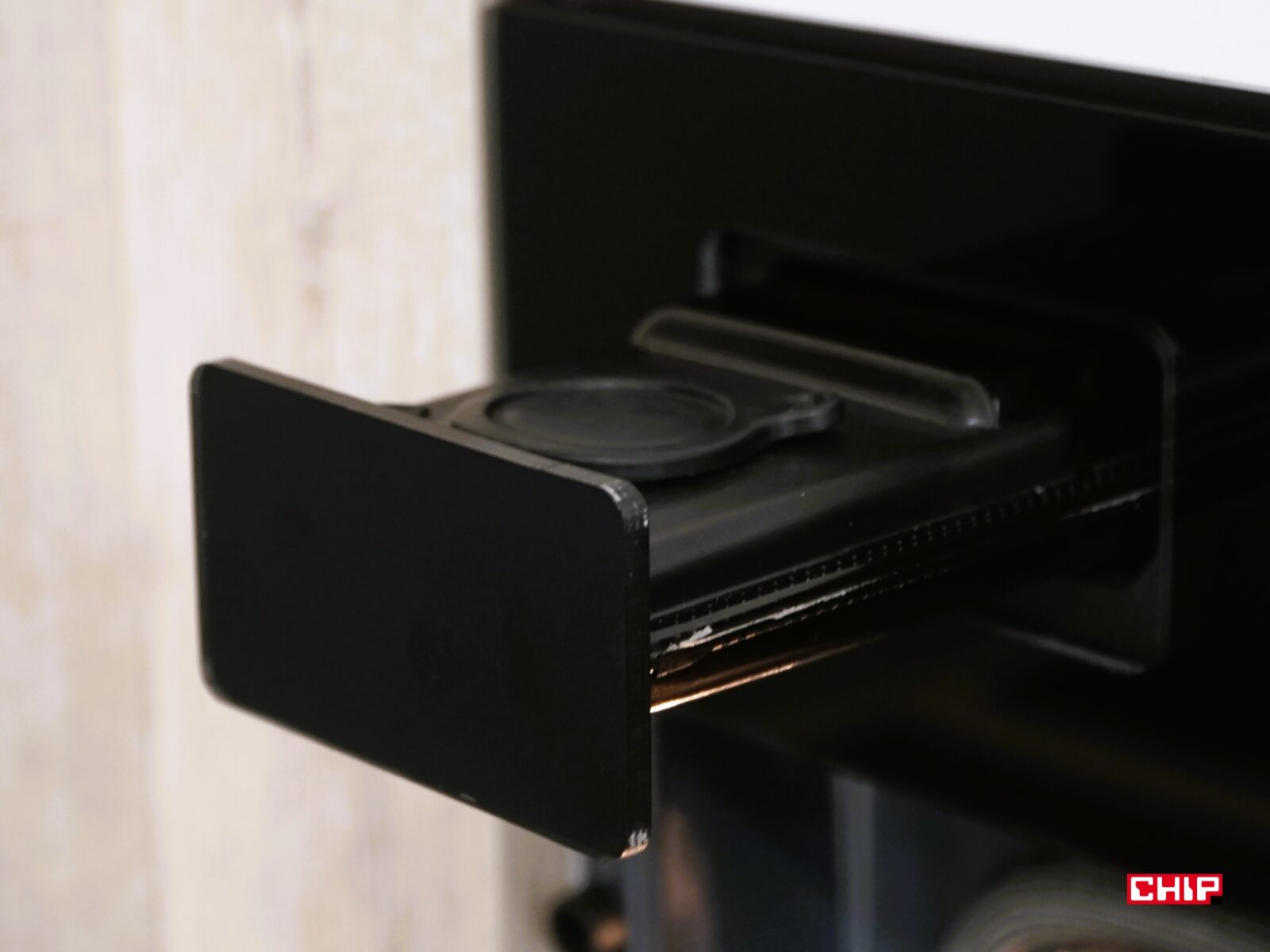 Na froncie piekarnika zaciekawiła mnie jedna dyskretna szuflada umieszczona po lewej stronie od wyświetlacza. To wysuwany pojemnik na wodę, dzięki której potrawy w piekarniku Haier I-Touch Steam serii 6 HWO60SM6TS9BH można z powodzeniem gotować na parze. Wasze ciała podziękują za mniejszą ilość tłuszczu w spożywanych warzywach, mięsie oraz rybach.