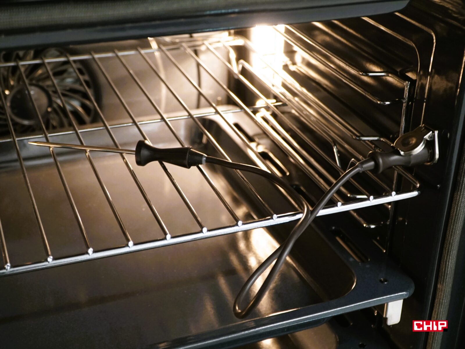 Uwagę z miejsca przyciąga znajdująca się w zestawie sonda do mięsa, która mierzy temperaturę wewnątrz przygotowywanej potrawy i pozwala ustawić odpowiedni cykl pieczenia. Wygląda na to, że to już koniec z niespodziankami pt. danie wygląda pięknie, ale w środku jest nieco surowe. System prowadnic teleskopowych powoduje, że wyciąganie naczyń lub blachy z piekarnika jest wygodniejsze i zajmuje nieco mniej czasu, nie powodując utraty temperatury.