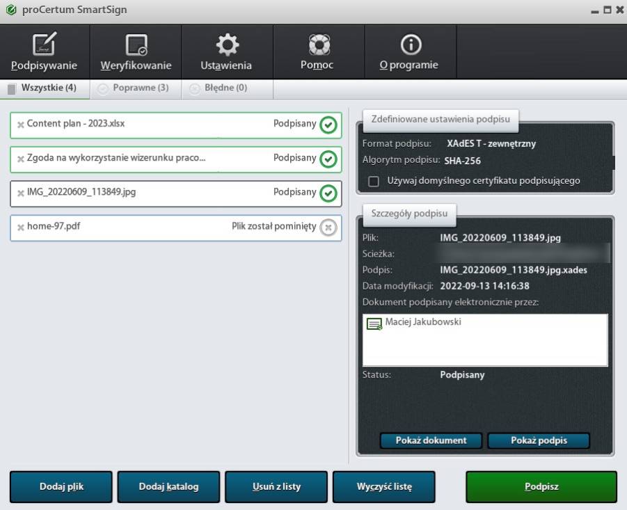 3. Dodaj certyfikat do aplikacji i podpisuj elektronicznie dokumenty