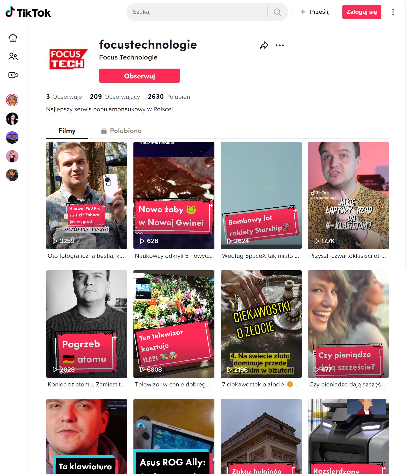 Obok długich, pogłębionych treści na YouTubie stawiamy też na zwięzłość przekazu i krótką formę TikToka. Nasz kanał w tym serwisie – @FocusTechnologie – jest aktywny już od kilku tygodni i prowadzi go Michał Mielnik, dostarczając ciekawostek ze świata nauki i technologii. Zachęcamy do obserwowania!