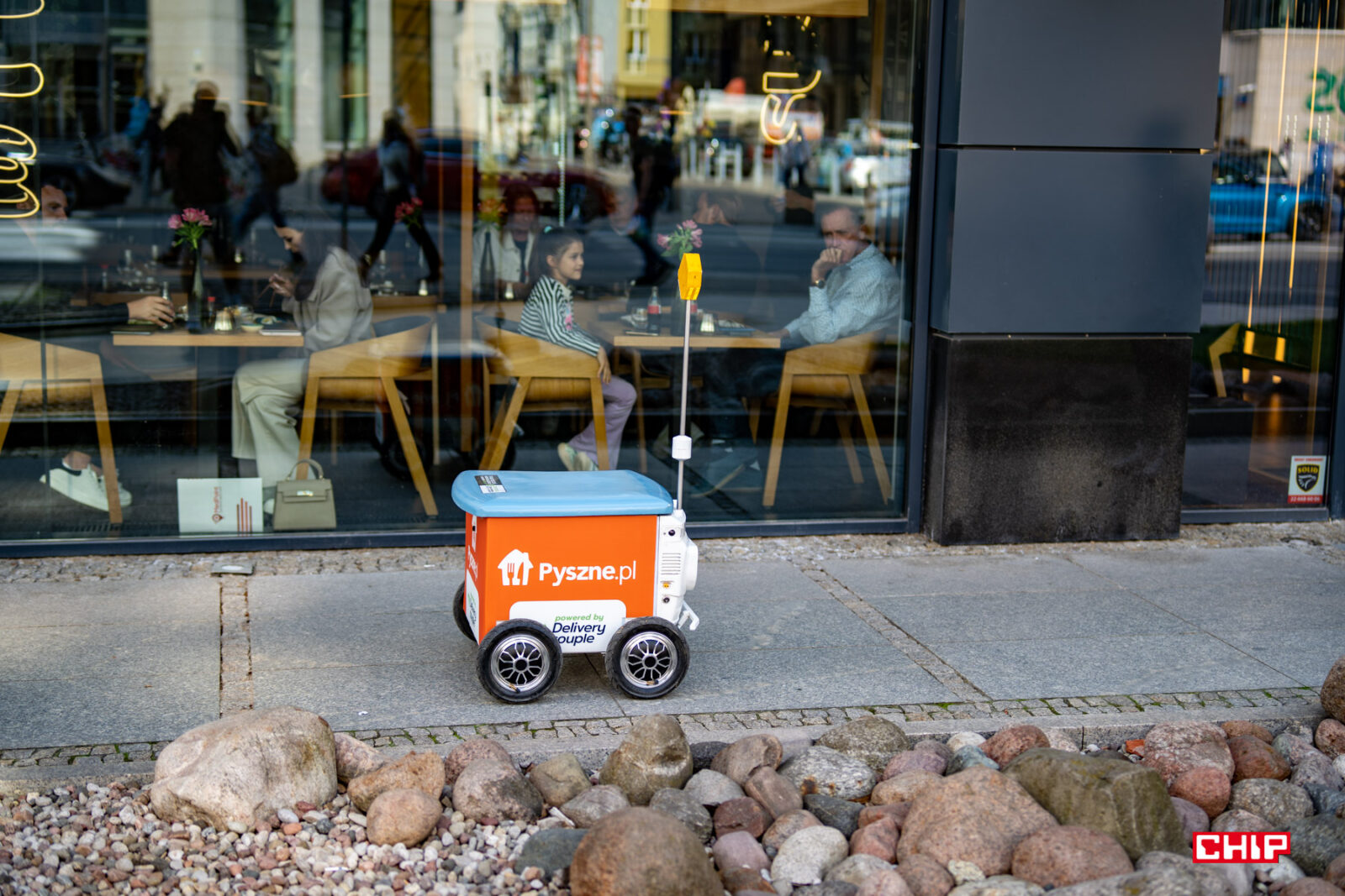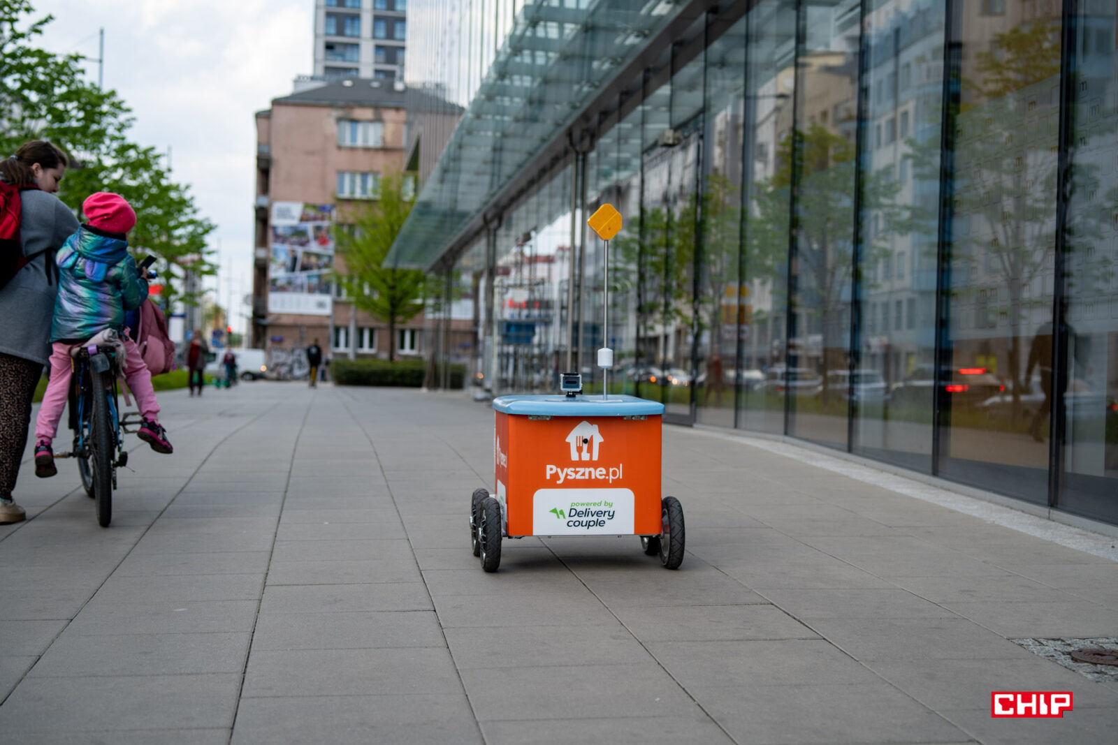 Kiedy śledziliśmy robota dostarczającego nasze zamówienie, na dystansie nieco ponad kilometra w zasadzie przestałem liczyć, ile osób zatrzymało się tylko po to, żeby zrobić Mateuszowi zdjęcie, albo nagrać krótki film. Bywa to, przynajmniej na razie, przekleństwem robota. Po dostarczeniu naszego zamówienia, w drodze powrotnej do lokalu Mateusz został dosłownie uziemiony na kilka minut przez dziecko, które stanęło mu na drodze i chciało się z nim bawić. Jeśli więc Wasze zamówienie gdzieś utknęło po drodze, to niewykluczone, że właśnie dlatego, że dostawca wzbudził za dużą sensację po drodze. Ale spokojnie, robot cały czas podgrzewa jedzenie, więc nie ma obaw o to, że dojedzie zimne.