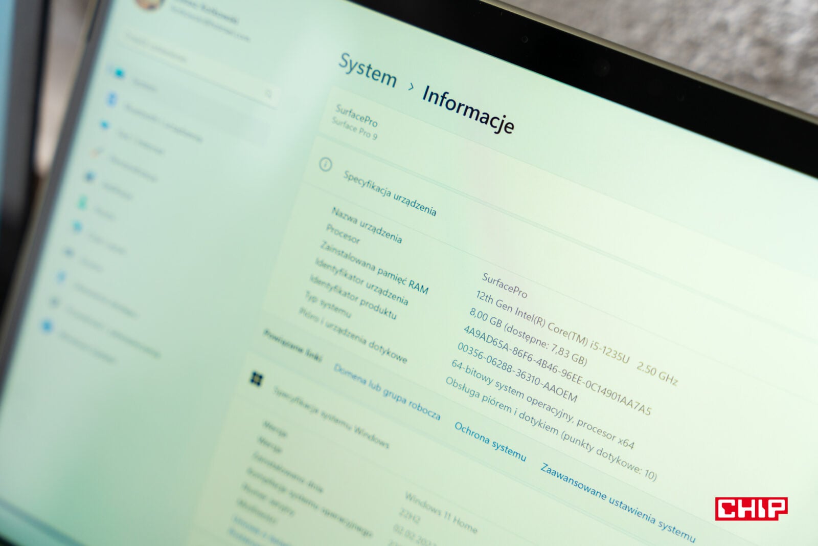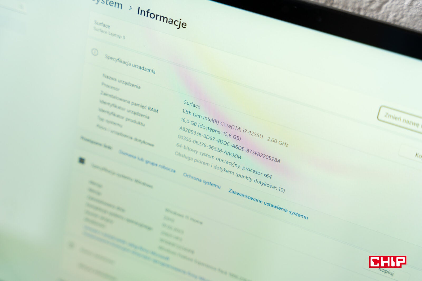 Zarówno testowany przeze mnie Surface Pro 9, jak i Surface Laptop 5 wyposażone są w procesory Intela 12. Gen. i są to niestety modele z serii U. Jeśli chodzi o konkretną konfigurację testowanych egzemplarzy: