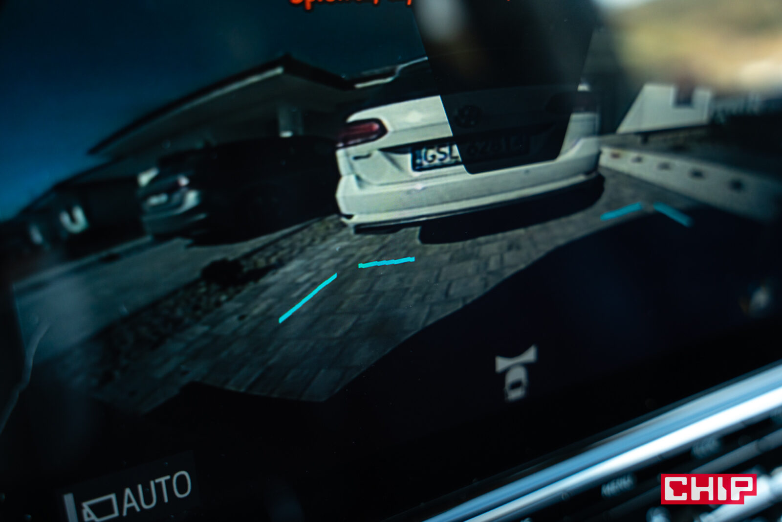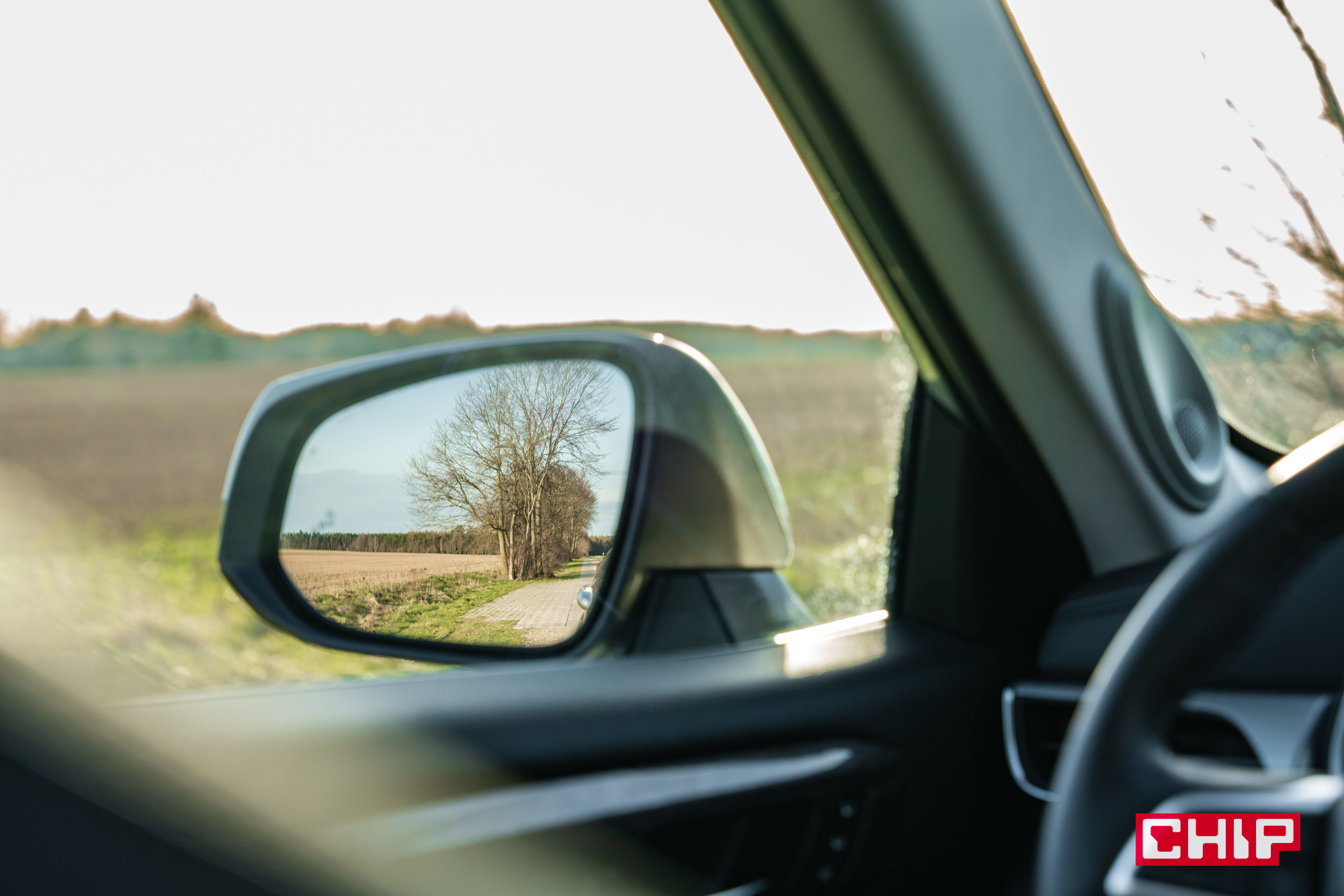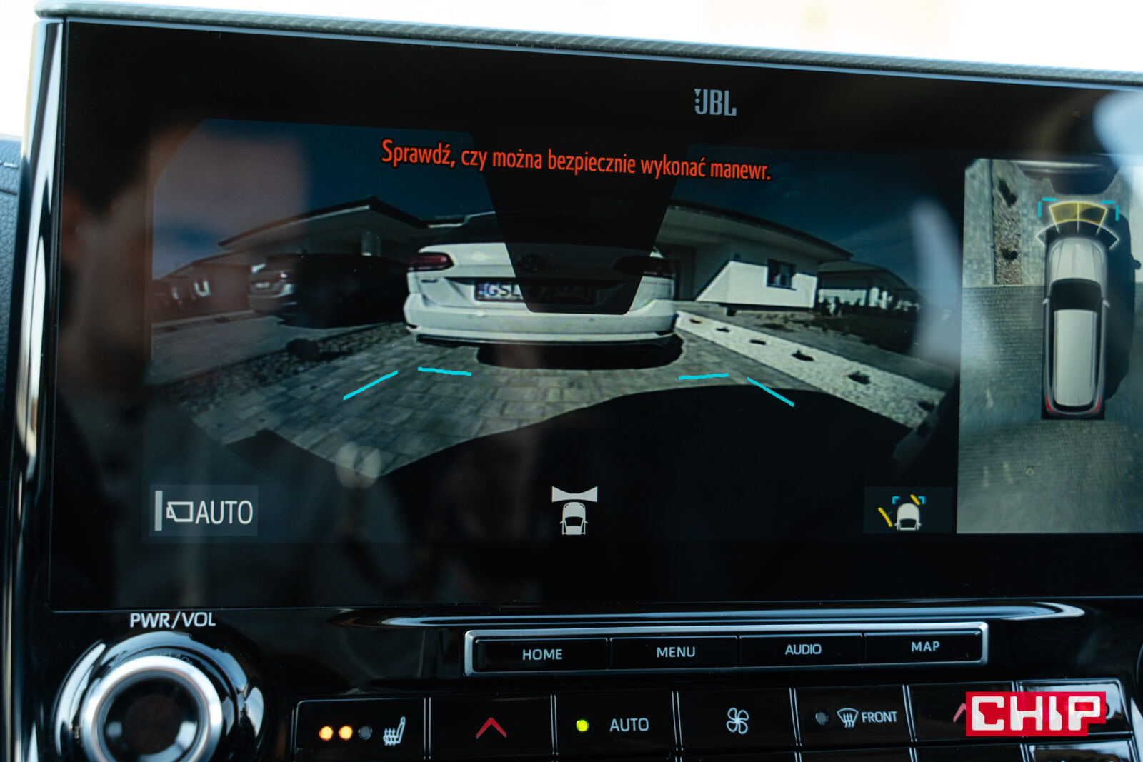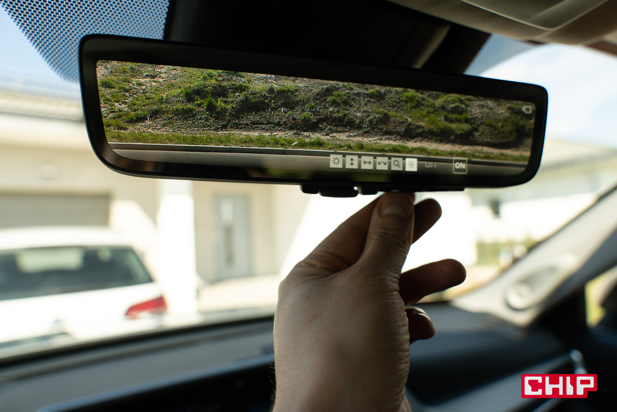 Sam obraz wyświetlany w lusterku jest tak niskiej jakości, że trudno dopatrzyć szczegóły (podobnie zresztą jak obraz z innych kamer, ale o tym za chwilę). Do tego kąt widzenia kamery jest taki, że nie sposób choćby orientacyjnie określić realnej odległości jadących za nami samochodów. Lusterko jest też za ciemne (zwłaszcza gdy odsłonimy dach panoramiczny) i jak to zwykle bywa z kamerami tylnymi, kamera w lusterku staje się bezużyteczna w czasie deszczu czy śniegu, bo bardzo szybko się brudzi. Na szczęście na drzwiach mamy klasyczne lusterka wielkości szpadli, które co prawda w dużej mierze są odpowiedzialne za hałas w czasie jazdy, ale za to dają nam bardzo dobrą widoczność do tyłu.