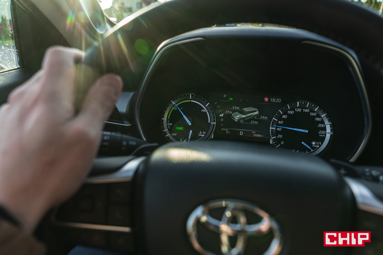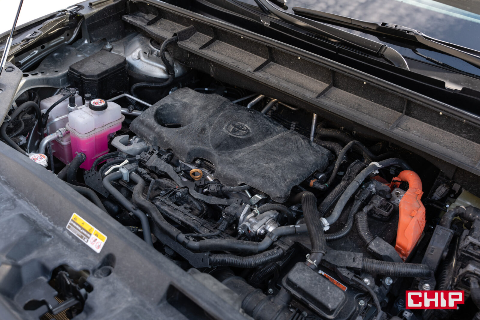 Pod maską znajduje się 4-cylindrowy silnik benzynowy o pojemności 2,5l, który w tandemie z układem hybrydowym generuje 248 KM. Jak na hybrydę od Toyoty przystało, zamiast klasycznej skrzyni biegów mamy tu przekładnię e-CVT. Auto wyposażono także w inteligentny napęd na wszystkie koła, noszący tutaj nazwę AWD-i, zdolny przenieść maksymalnie 80% napędu na tył w razie potrzeby. Przez 90% czasu Toyota pozostaje jednak w trybie FWD, czasem tylko pomagając sobie rozłożeniem mocy na obie osie po równo, gdy np. startujemy na śliskiej nawierzchni lub jedziemy w trybie Trail.