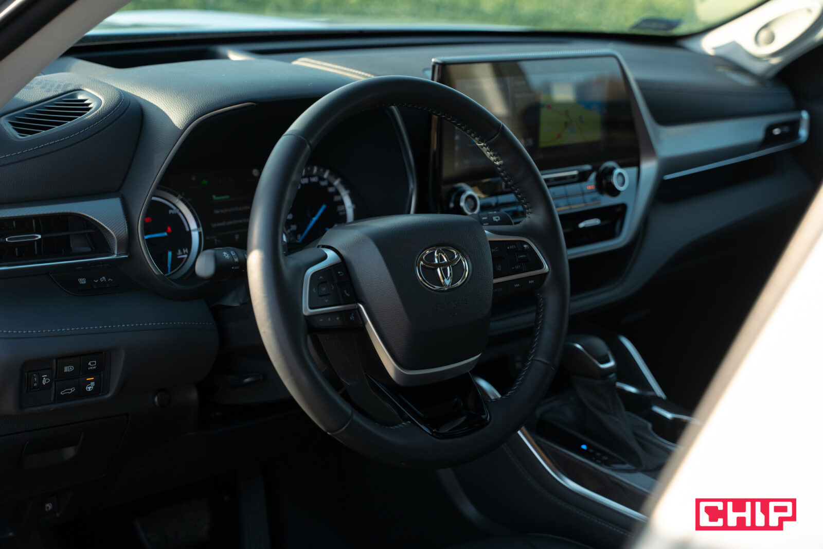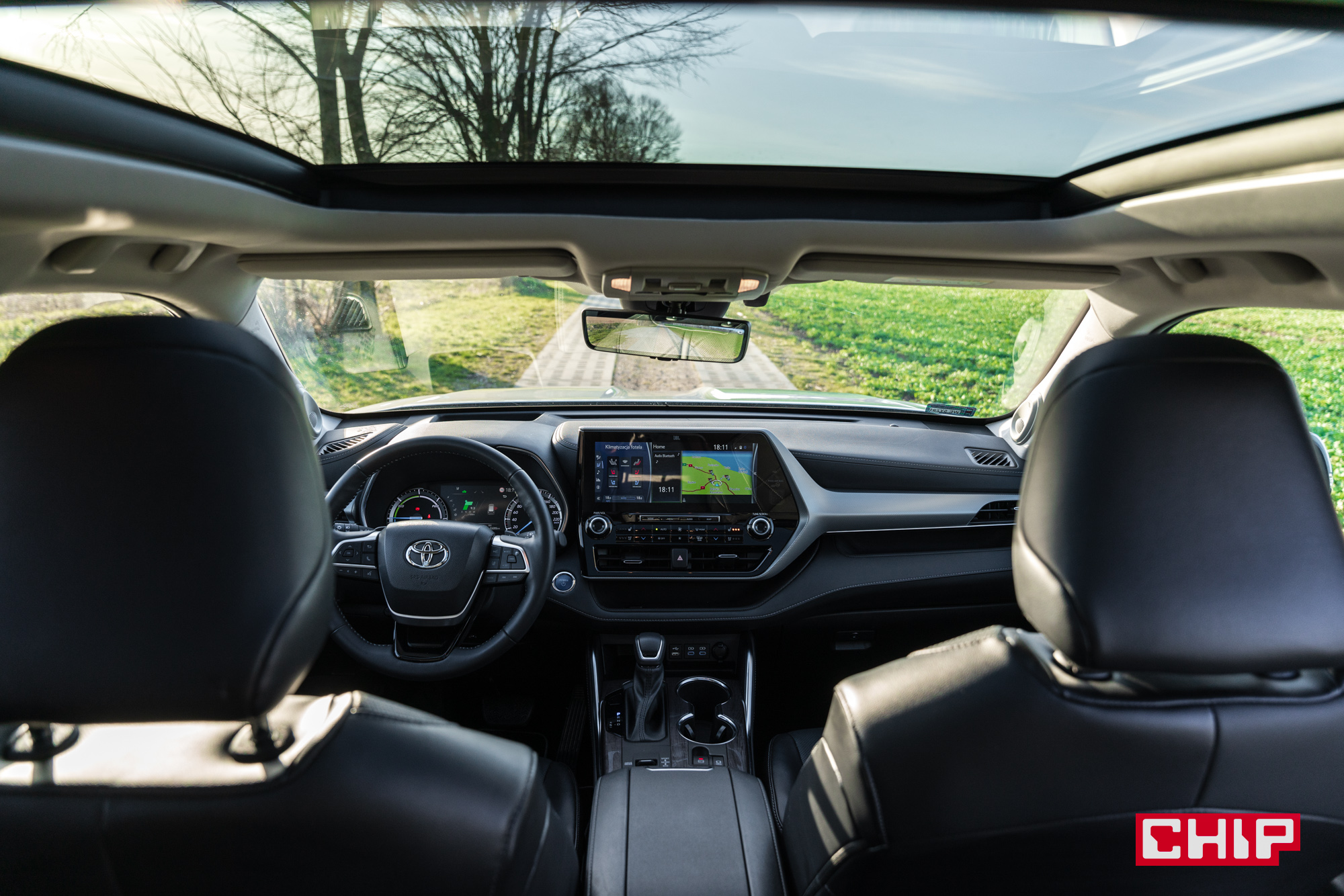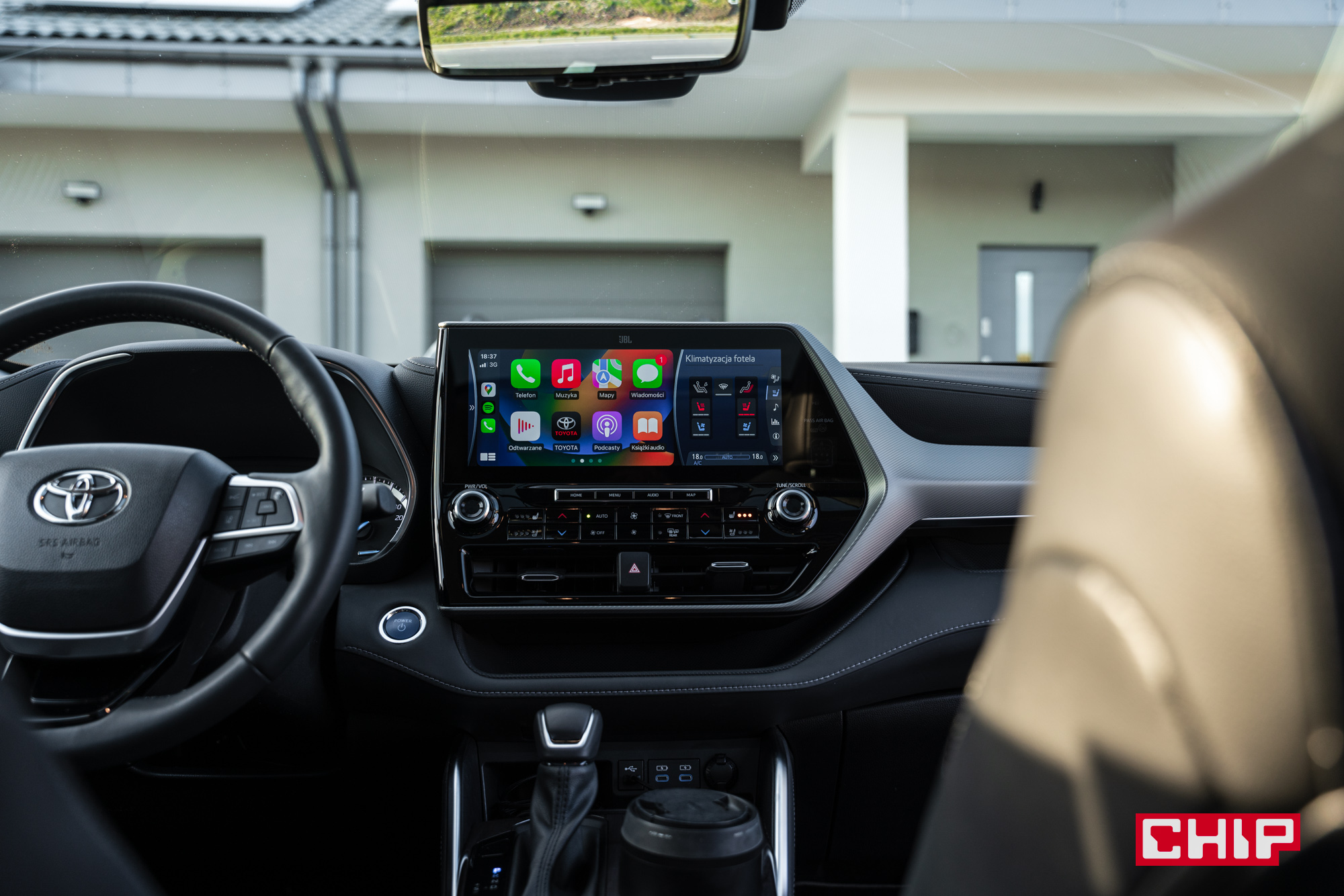 Highlander na pewno zasługuje za to na pochwałę za wszechobecne przyciski. Wszystkie kluczowe funkcje, do których sięgamy po wielokroć każdego dnia – klimatyzacja, podgrzewanie/wentylowanie foteli, przełączanie menu, etc. – mamy dostępne pod ręką w formie przełączników na tyle dużych, że łatwo w nie trafić nawet w czasie jazdy i to nosząc rękawiczki. Dobrze, że tego modelu nie dopadła jeszcze głupia moda na obsługę wszystkiego ekranem czy przyciskami pojemnościowymi, co jest nie tylko niewygodne, ale też niebezpieczne w czasie jazdy.