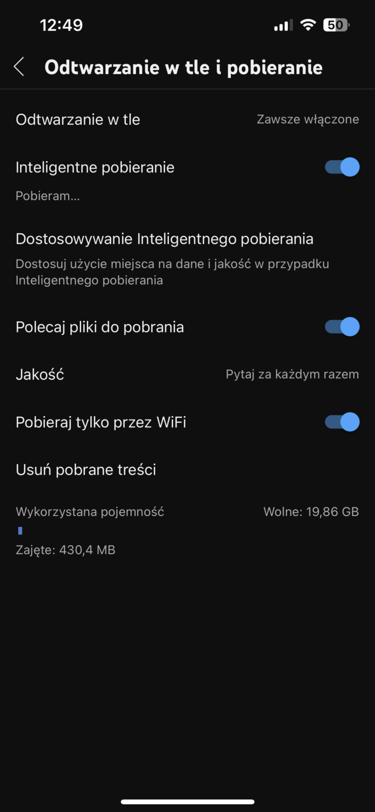 Google dodał właśnie funkcję Inteligentnego pobierania (Smart Downloads), która po podłączeniu do sieci Wi-Fi automatycznie zapisuje rekomendowane filmy do biblioteki offline. Znajdziemy ją pod przyciskiem Biblioteka, w sekcji Pobrane. Zawczasu warto ograniczyć miejsce na dane w ustawieniach aplikacji, żeby nie zapchać sobie pamięci (da się ustawić limit w GB).
