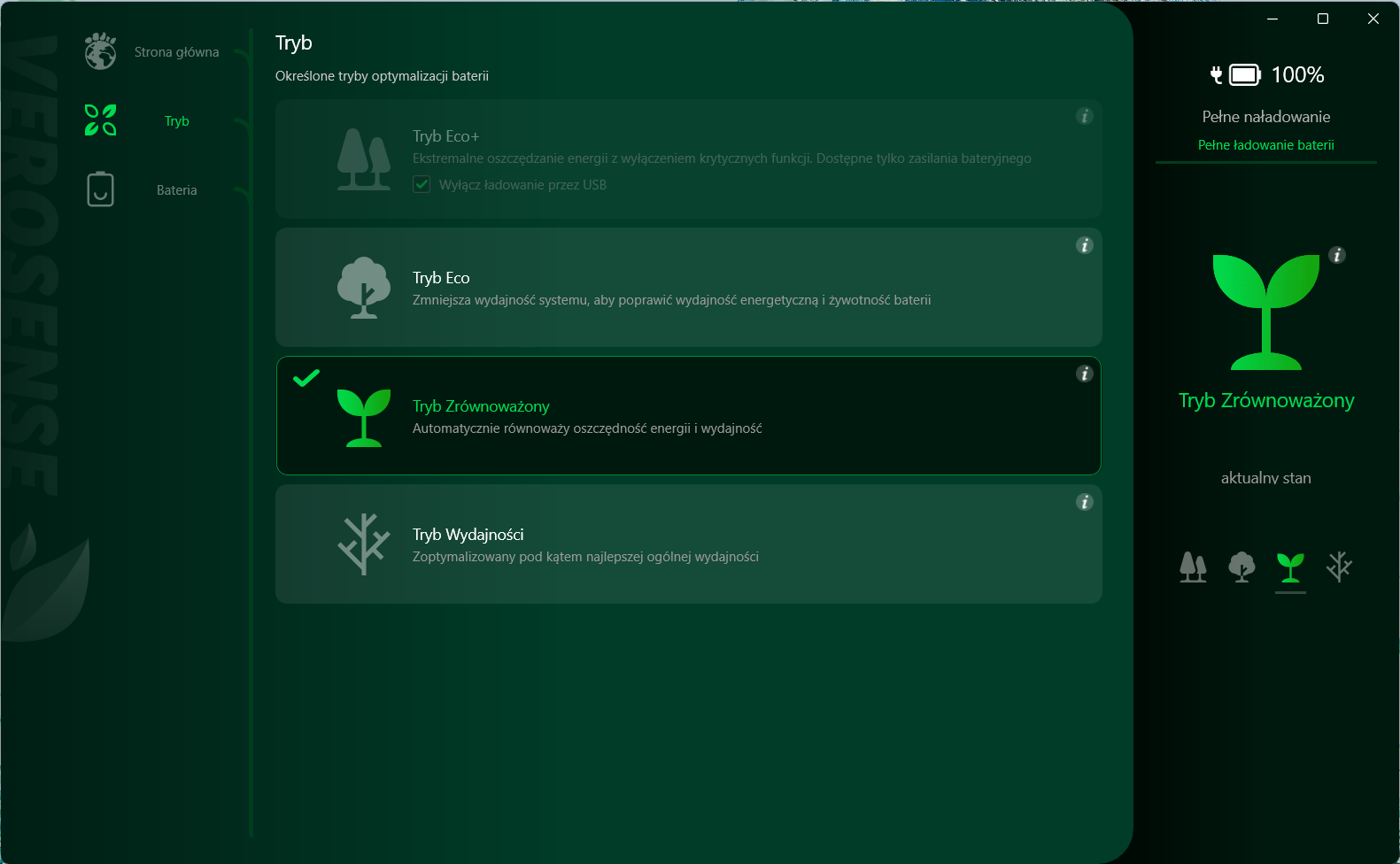 Acer Aspire Vero AV15-52 wyposażony został w system Windows 11 Home. Na pokładzie znajdziemy aplikacje mniej przydatne oraz te, o których warto wspomnieć. Do nich należy między innymi firmowy Acer Care Center, pozwalający między innymi na aktualizacje sterowników i sprawdzanie sprzętu, oraz Acer Vero Sense, służący do łatwego wyboru profili zasilania i sposobu zasilania baterii – bez tego programu nie wszystkie „zielone” funkcje są dostępne.