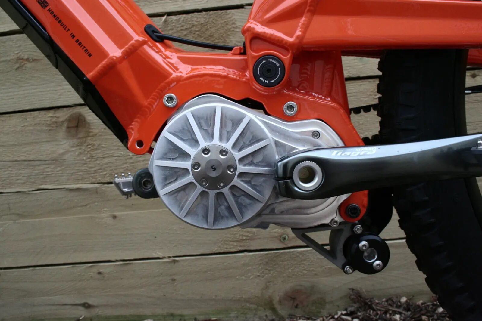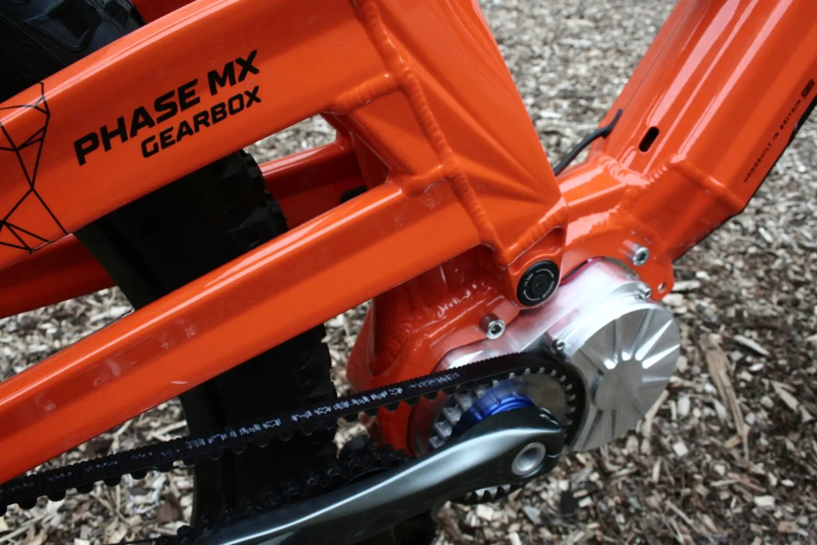 Firma Intradrive od dawna opracowuje rozwiązania oraz technologie z myślą o układach napędowych. Nie zabrakło jej podczas niedawnego festiwalu Tweedlove, na którym to pochwaliła się rowerem Orange Phase MX Strange (oryginał z silnikiem Shimano EP8 widzicie na zdjęciu powyżej) z prototypowym układem napędowym między korbami, który to łączy silnik i skrzynię biegów w jednej obudowie odpowiadającej silnikowi Shimano EP8. Taka wewnętrzna przekładnia jest odpowiednikiem zewnętrznej przerzutki, a więc zapewnia możliwość dostosowywania charakterystyki napędu poprzez zmianę prędkości i momentu obrotowego na wale wyjściowym.
