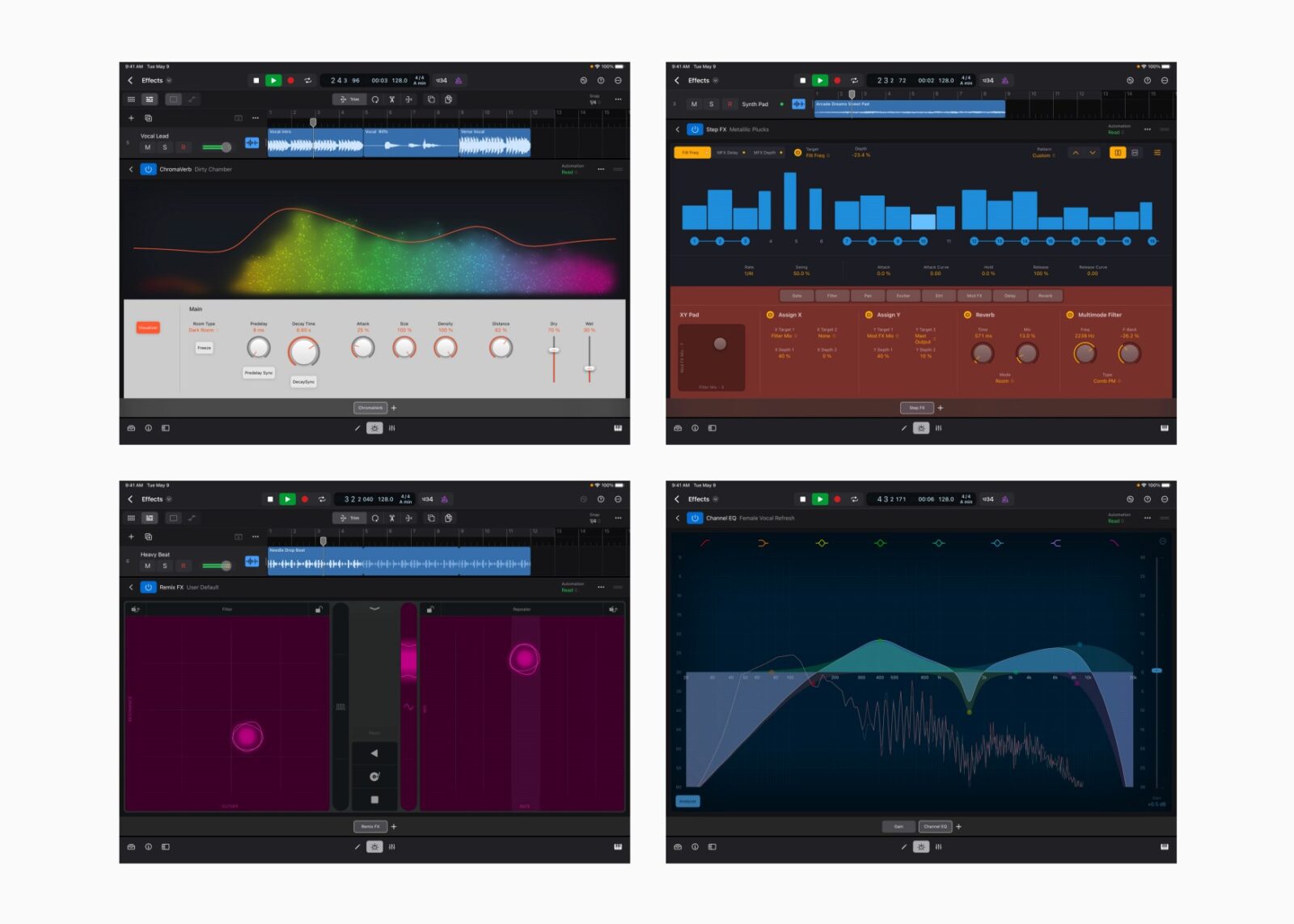 Podobnie rzecz się ma z Logic Pro. Interfejs został gruntownie przebudowany na potrzeby ekranów dotykowych, aby można było korzystać z szeregu rozbudowanych funkcji. Najważniejsze jest tu chyba odpowiednie dostosowanie klawiatury MIDI czy padów, co pozwala programować dźwięki bez konieczności podłączania dodatkowych akcesoriów, a jako że Logic jest „w standardzie” wyposażony w ogrom najwyższej jakości instrumentów wirtualnych i syntezatorów (szczególnie Alchemy), to taka funkcja jest tym bardziej cenna dla twórcy. Na razie nie jest jasne, czy Apple pozwoli na instalowanie dodatkowych wtyczek dla FCP czy Logica, ale w przypadku tego drugiego można powiedzieć, że nie będzie to przesadnym problemem, jeśli tylko Apple zachowa aktualną preinstalowaną bibliotekę sampli i wtyczek.
