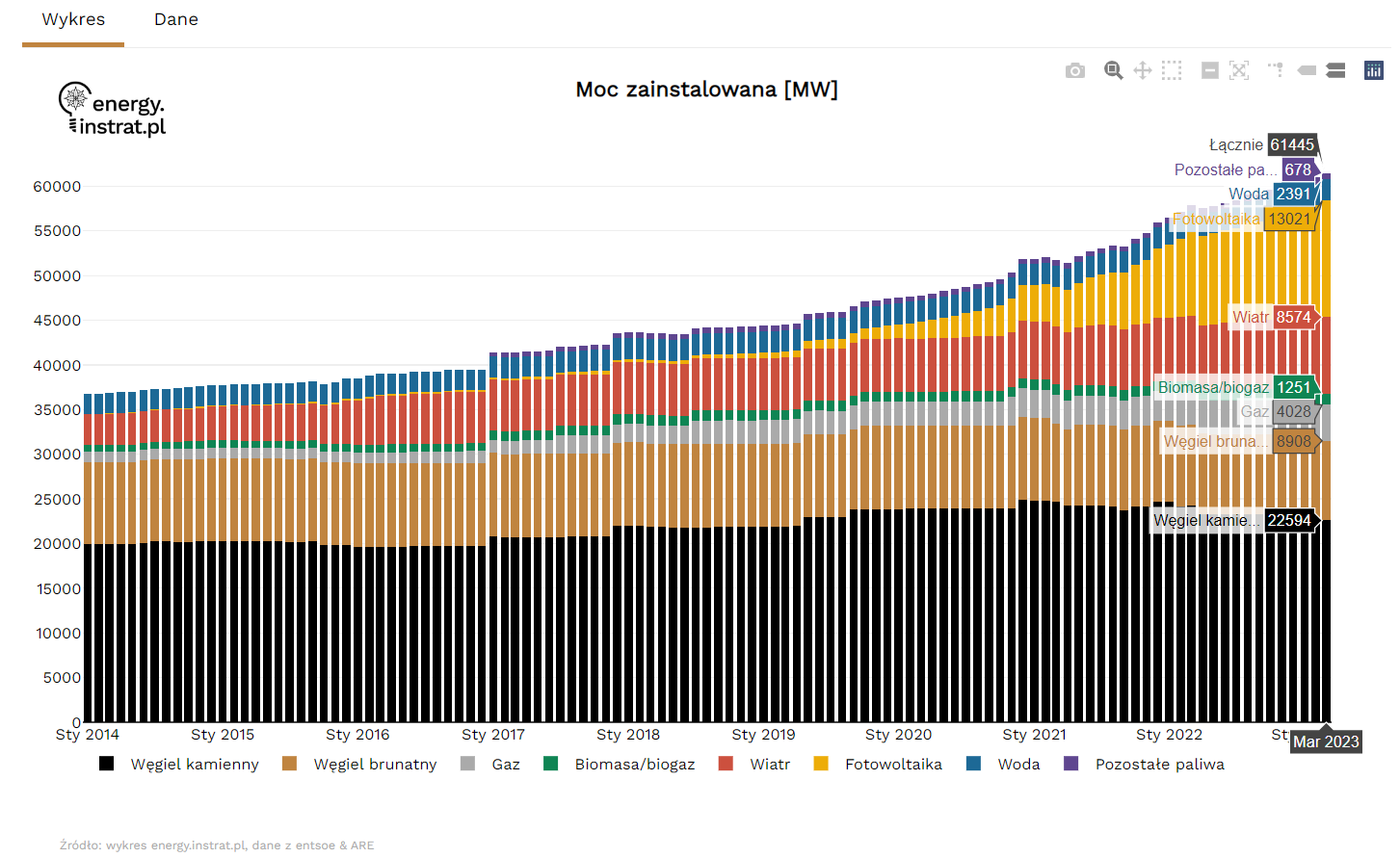 Pod względem mocy zainstalowanej panele słoneczne prześcignęły elektrownie na węgiel brunatny (m.in. Bełchatów i Turów) już w marcu 2022 roku, a turbiny wiatrowe – w listopadzie 2021 roku. Jeśli obecne tempo rozwoju fotowoltaiki utrzyma się na tym samym poziomie (41 proc. w skali roku), to za mniej niż dwa lata stanie się ona najsilniejszym źródłem energii w Polsce.