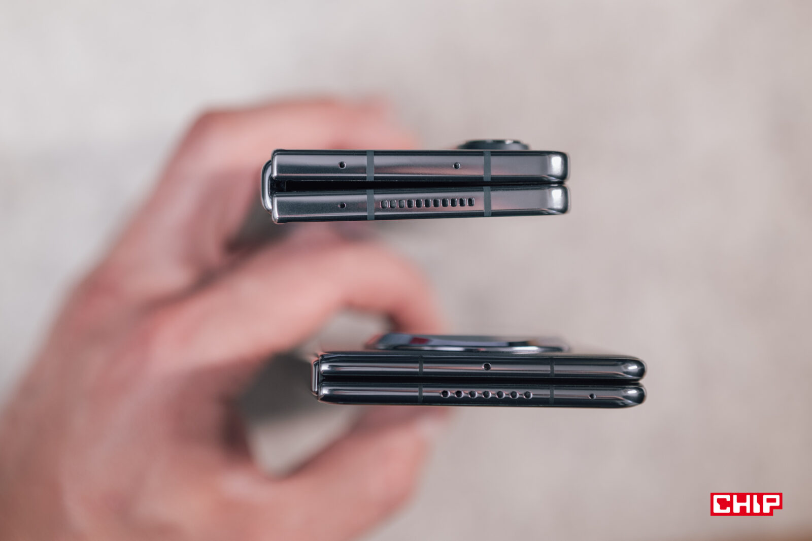 Grubość Galaxy Z Fold 4 waha się od 14,2 mm do 15,8 mm, ze względu na wspomnianą szczelinę. To czyni z niego prawdziwego grubaska wśród składaków. Trzymanie go jedną ręką, nawet podczas obsługi tylko ekranu zewnętrznego, może nastręczać problemy. Zgodnie z przeciekami, wraz ze zmianą zawiasu i kilkoma ulepszeniami, grubość urządzenia po złożeniu ma spaść do 13,4 mm – to naprawdę duża różnica, ale…