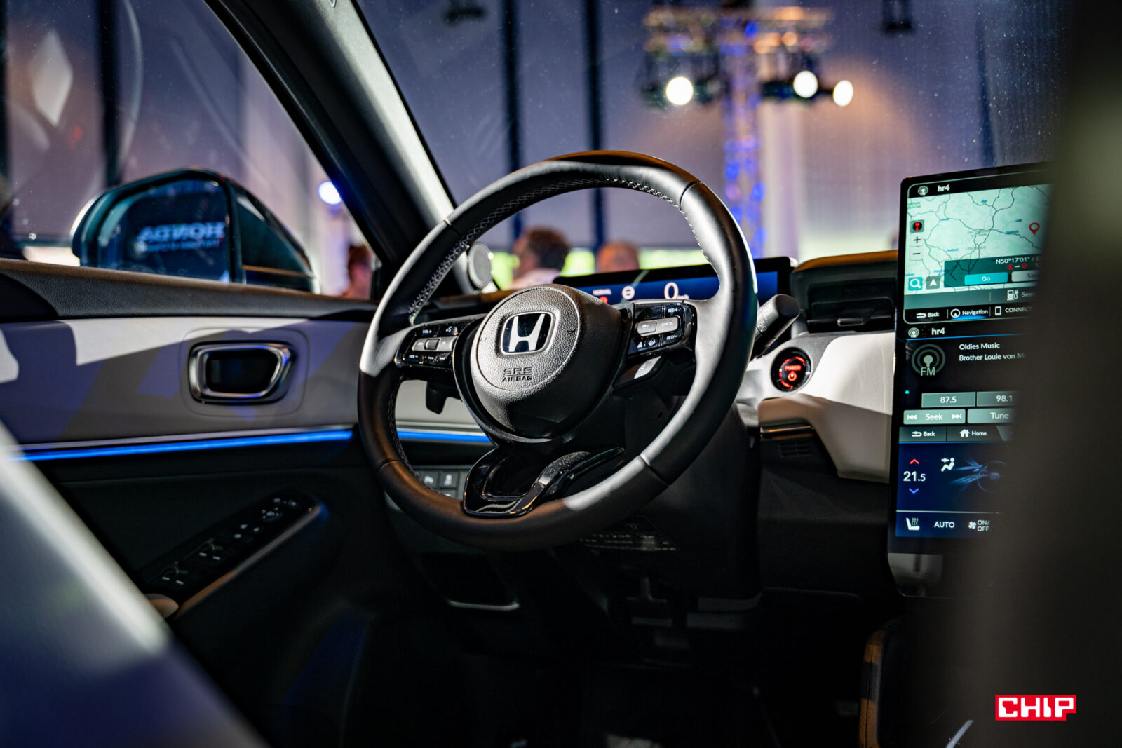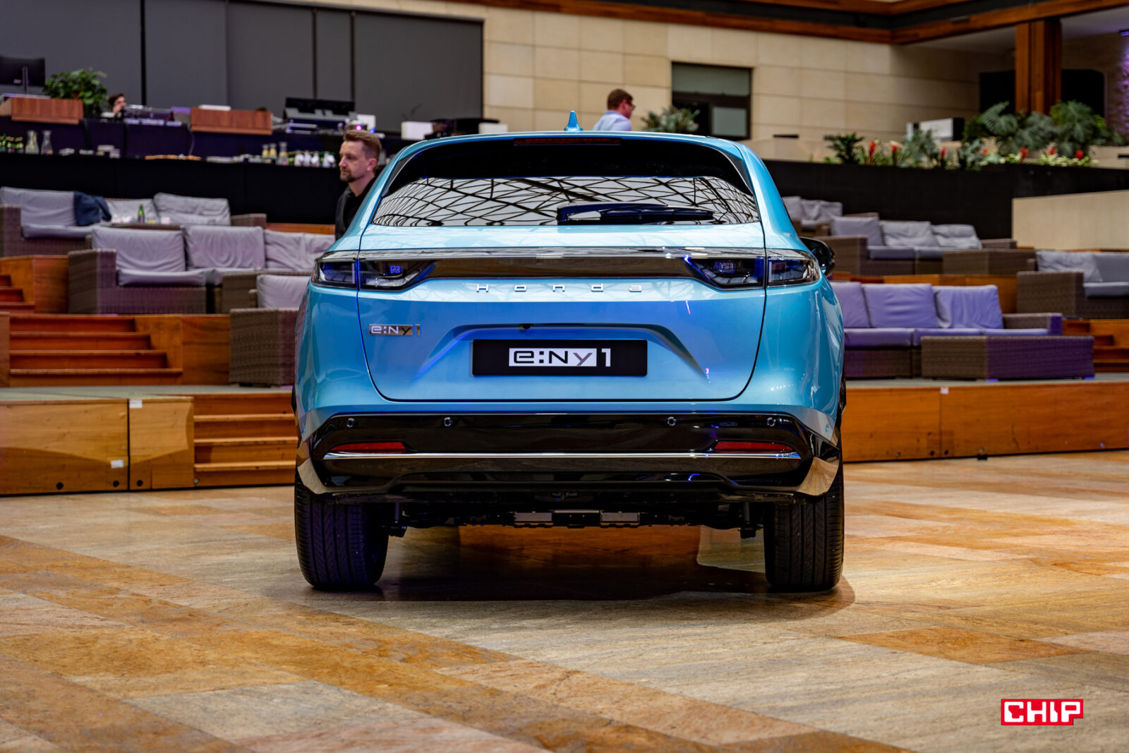 Wszystko się zgadza – mamy do czynienia z elektrycznym crossoverem segmentu B – autem z coraz bardziej pożądanym napędem, zamkniętym w najbardziej pożądanym przez klientów opakowaniu zgrabnego, niewielkiego SUV-a. Tak, japoński producent dobrze wybrał konfigurację i nazwę. Małe, miejskie crossovery cieszą się niesłabnącym zainteresowaniem, a Honda e:Ny1 niewątpliwie będzie stanowiła ozdobę segmentu. Nie jest krzykliwa, ale przyciąga wzrok wdzięcznymi, smukłymi liniami, delikatnymi przetłoczeniami i świeżym kolorem. 4380 mm długości i 1600 mm wysokości zbliżają ją rozmiarowo do ZR-V, a 2610 mm rozstawu kół, 910 mm zwisu z przodu i 860 mm zwisu z tyłu w połączeniu ze sztywną ramą i niskim środkiem ciężkości, osiągniętym dzięki umieszczeniu akumulatorów w podłodze, pozwalają oczekiwać stabilnego prowadzenia. Z zapewnień Hondy wynika, że będzie nie tylko stabilnie, ale też szybko.