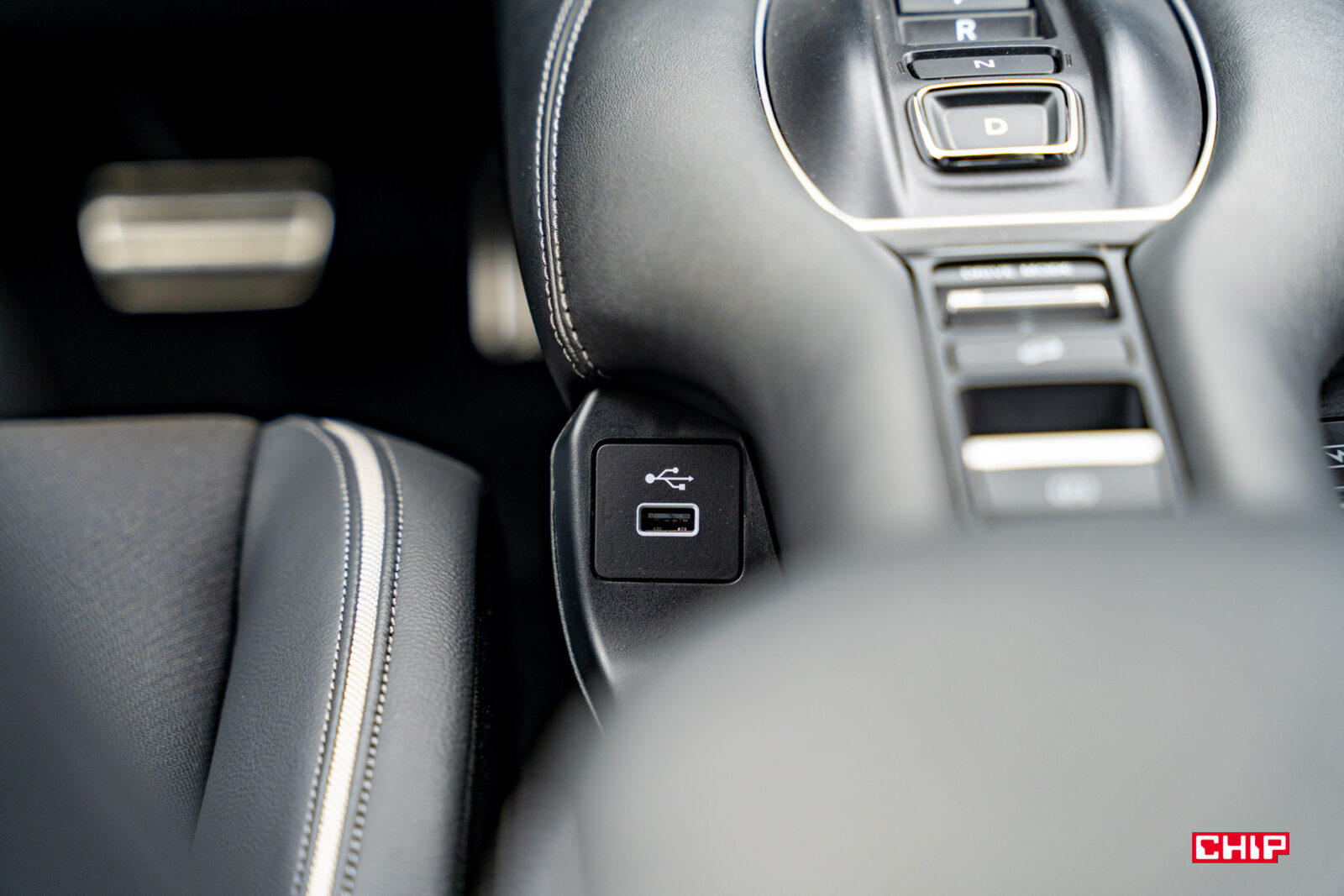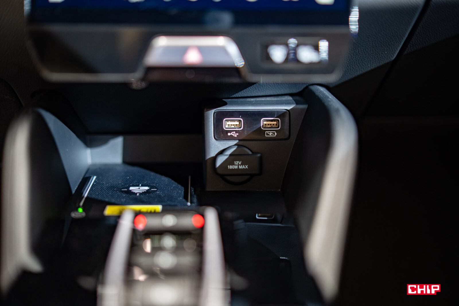 Testując hybrydy plug-in, zazwyczaj narzekam na żenująco powolne ładowanie, ale tutaj mamy wypas, bo maksymalna moc ładowania to 6,8 kW, co pozwala naładować akumulator do pełna w 2,5 godziny, zakładając idealne warunki (moc ładowarki, temperaturę akumulatora, temperaturę powietrza, etc.).