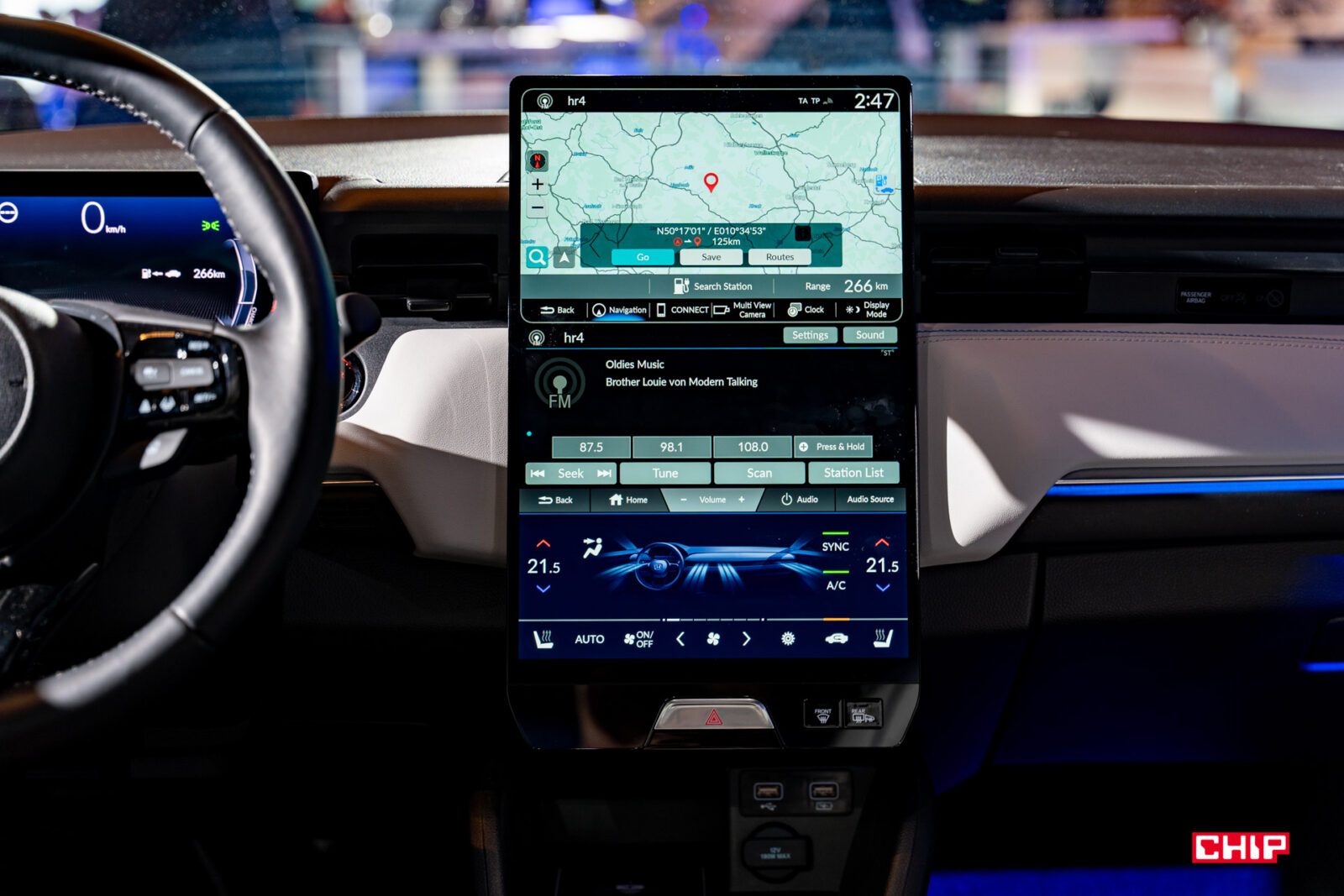 W ramach Elegance dostaniemy 10,25-calowy inteligentny ekran kierowcy oraz umieszczony centralnie, 15,1-calowy wyświetlacz dotykowy, podzielony na 3 strefy: dół będzie poświęcony regulacji klimatyzacji, środek będzie odpowiadał za menu samochodu i multimedia, natomiast górna część będzie strefą łączności, wyświetlająca często używane aplikacje takie jak np. mapa. Łączność Apple CarPlay i Android Auto są oczywiście dostępne w ramach tej wersji wyposażenia.