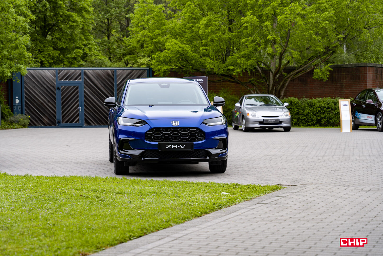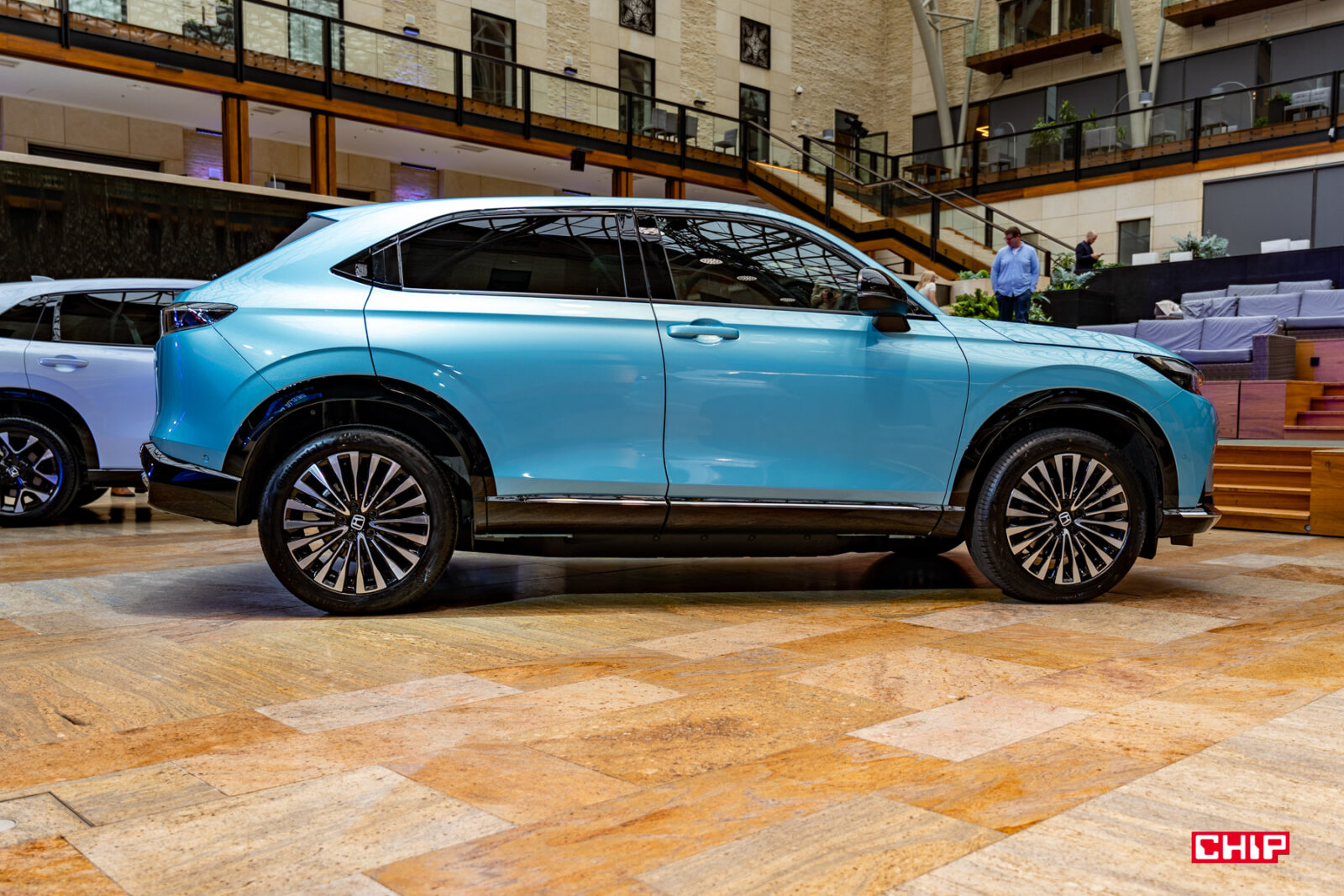 Drugim zaprezentowanym autem był zupełnie nowy model – Honda ZR-V e:HEV, pozycjonowana jako sportowy C-SUV. 4568 mm długości, 1840 mm szerokości, 2657 mm rozstawu osi i 1620 mm wysokości zgrabnie wpasowują ją w lukę pomiędzy CR-V a HR-V. Samo auto zachęca do patrzenia, spójrzcie na zdjęcia.