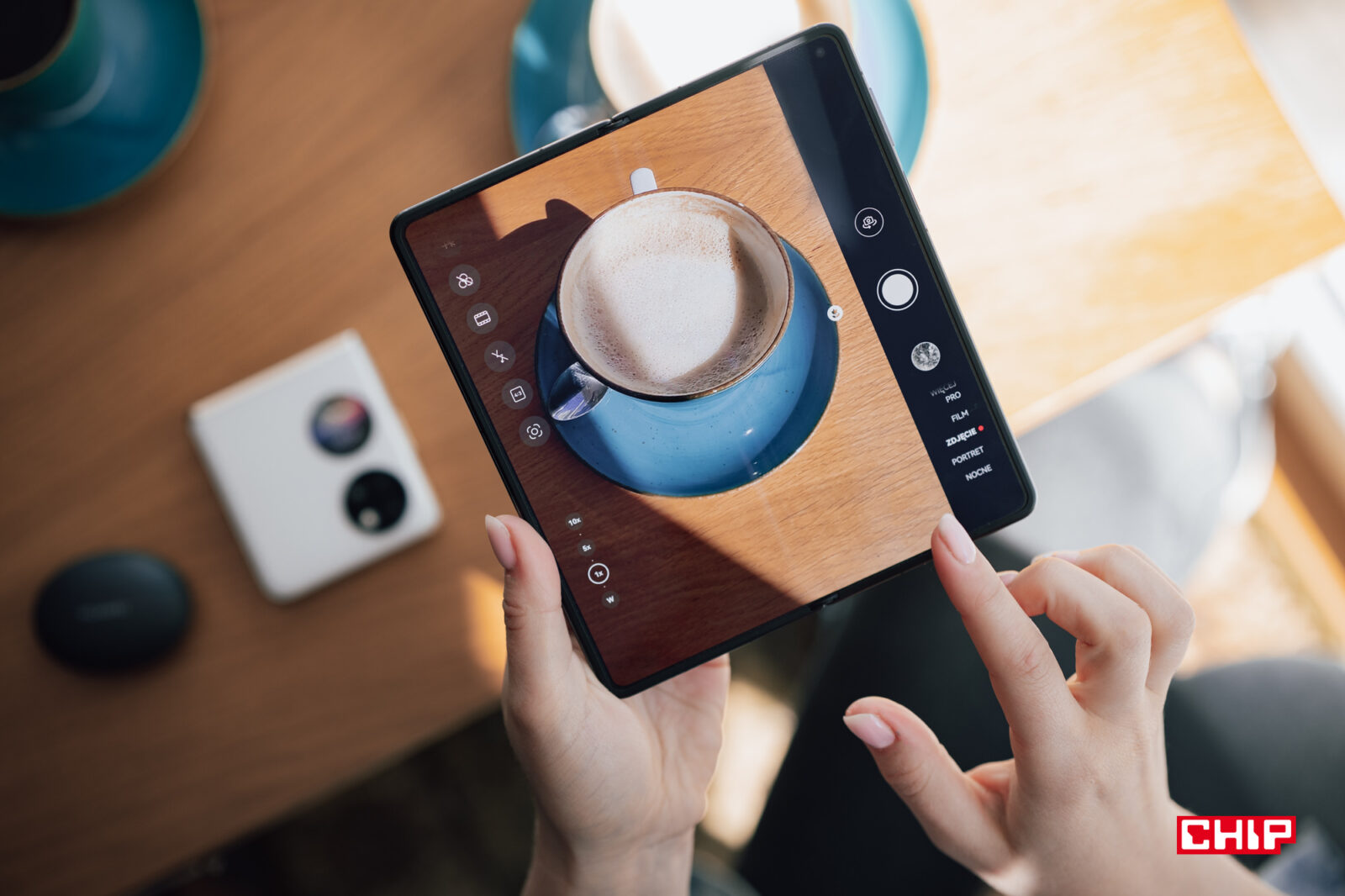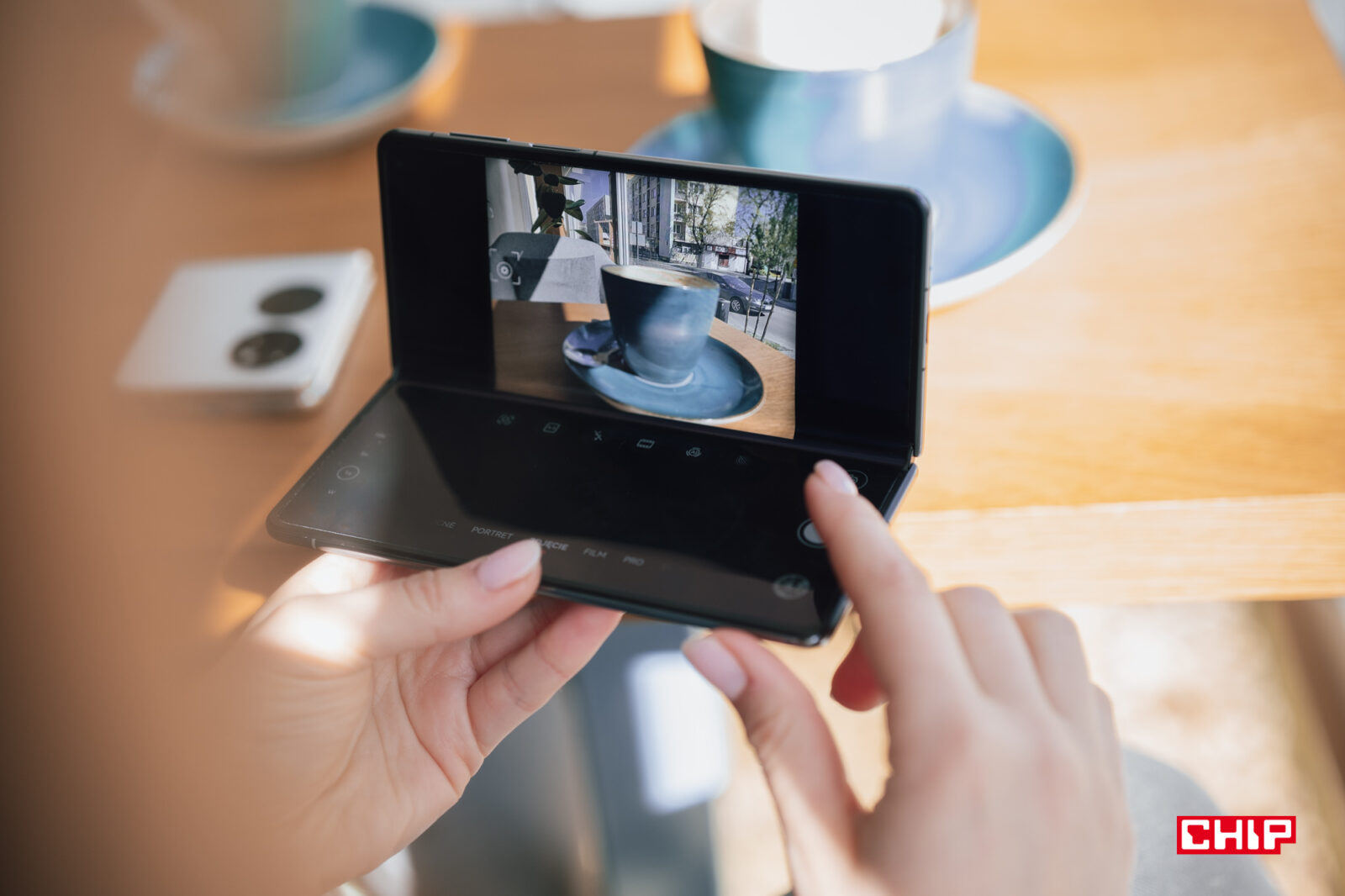 Pomijając jednak kwestię dostępu do aplikacji, mam nieco zgrzyt jeśli chodzi o systemowe wykorzystanie składania smartfona. Huawei co prawda przewiduje sporo opcji multitaskingu (mamy tu zarówno dzielenie ekranu na pół, jak i pływające okna), ale robi zaskakująco niewiele, by oferować coś więcej. Chyba jedyną aplikacją, która jakkolwiek wykorzystuje fakt składania ekranu, jest aparat, który przenosi elementy interfejsu na dolną część, gdy zegniemy konstrukcję.