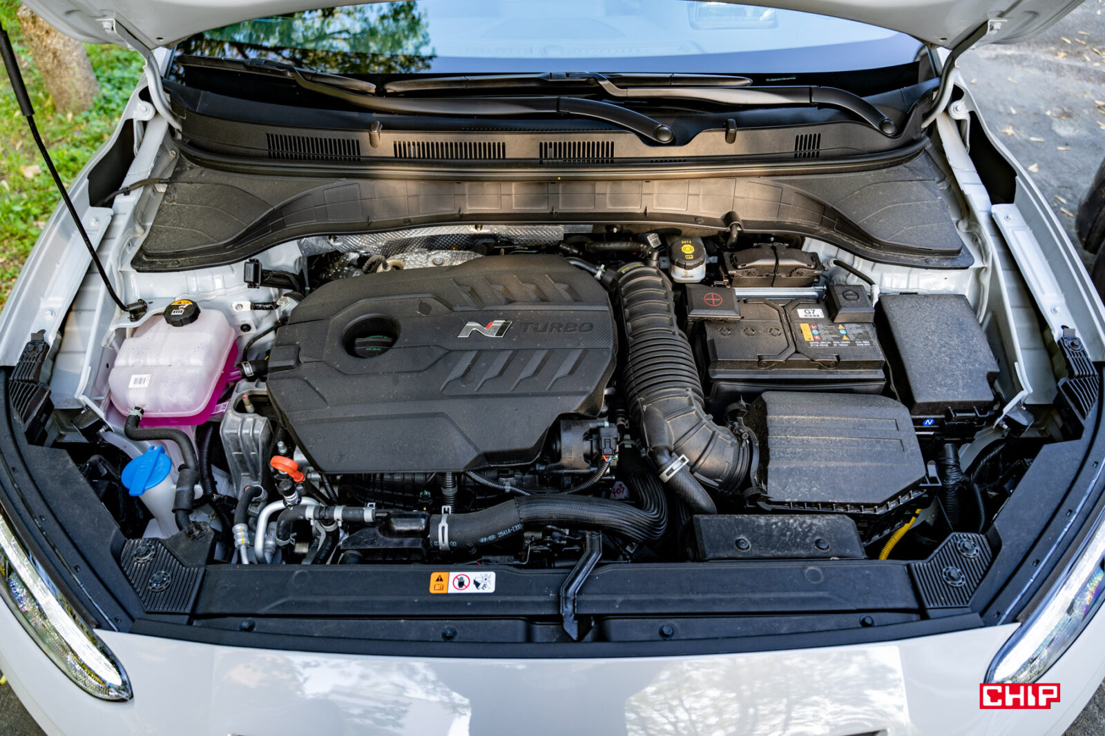 Kona N jest dostępna z jednym silnikiem – turbodoładowaną, 2-litrową jednostką benzynową wyposażoną w 4 cylindry i układ rozrządu DOHC. Pozwala na wygenerowanie 280 KM mocy przy 5500-6000 obr./min. i 392 Nm momentu obrotowego przy 2100-4700 obr./min. Rozpędza się 0-100 km/h w ciągu 5,5 s, przyspieszenie 80-120 km/h zajmuje jej 3,5 s, a maksymalna prędkość, do jakiej możecie ją rozbujać to 240 km/h. Moc jest przekazywana na przednią oś, a całość uzupełnia 8-biegowa, automatyczna skrzynia biegów z podwójnym sprzęgłem. Jak się tym jeździ? Jak Wam się zechce. Piszę całkiem serio.