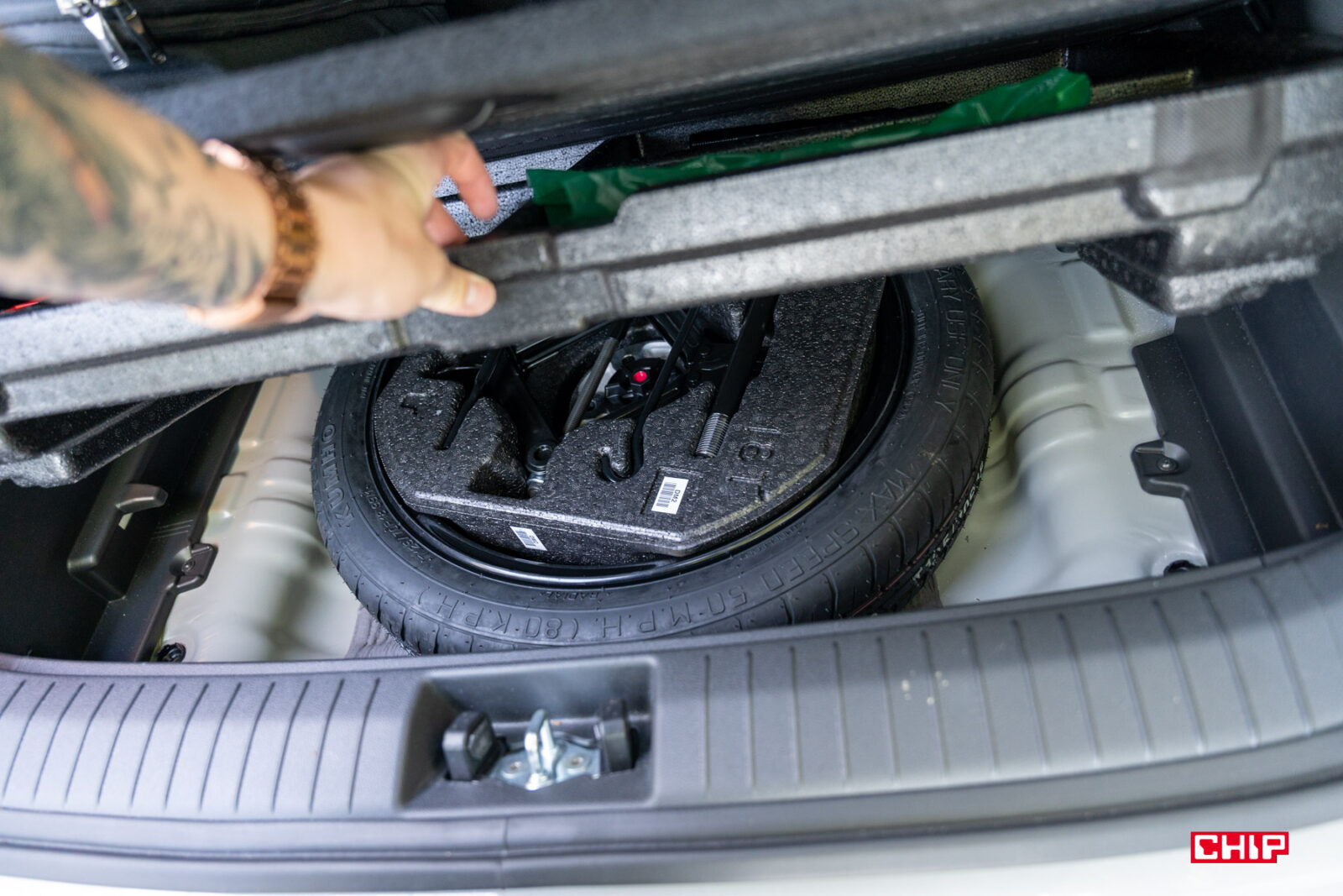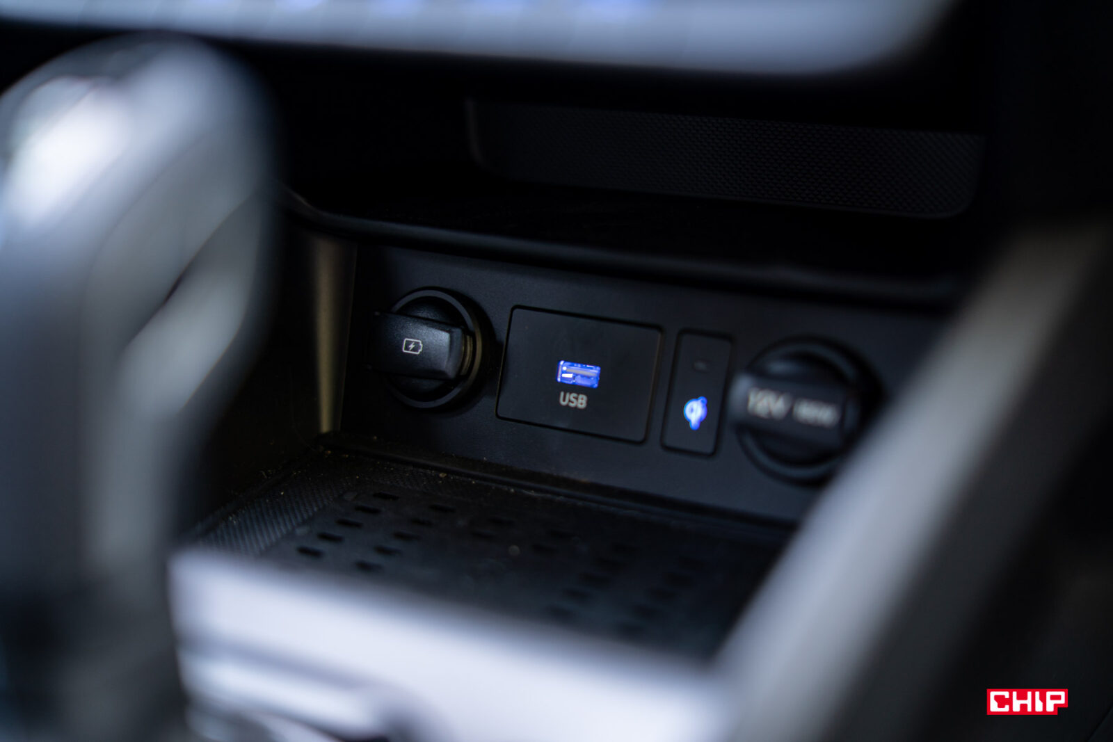 O ile z przodu mamy bardzo dużo miejsca, tak z tyłu, jeśli przednie fotele są ustawione w komfortowej pozycji, jest już troszkę na styk. Przy 183 cm wzrostu, siedząc z tyłu miałem lekki zapas przestrzeni przed kolanami, ale sedan to to zdecydowanie nie jest. Za to miejsca nad głową jest sporo. Podróżujący z tyłu mają do dyspozycji jeden port USB-A pod nawiewami klimatyzacji oraz opcjonalnie podgrzewane fotele w ramach pakietów Sport lub Luxury, które dodają też wentylowane i elektrycznie regulowane fotele z przodu. O cenach pakietów jeszcze porozmawiamy. Zdecydowanie jest to auto dla maksymalnie czterech osób, chyba że mówimy o przejeździe na bardzo krótkiej trasie.