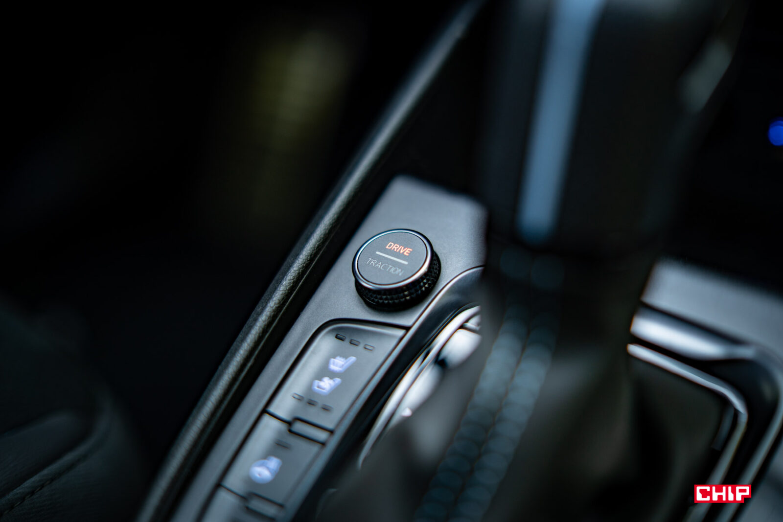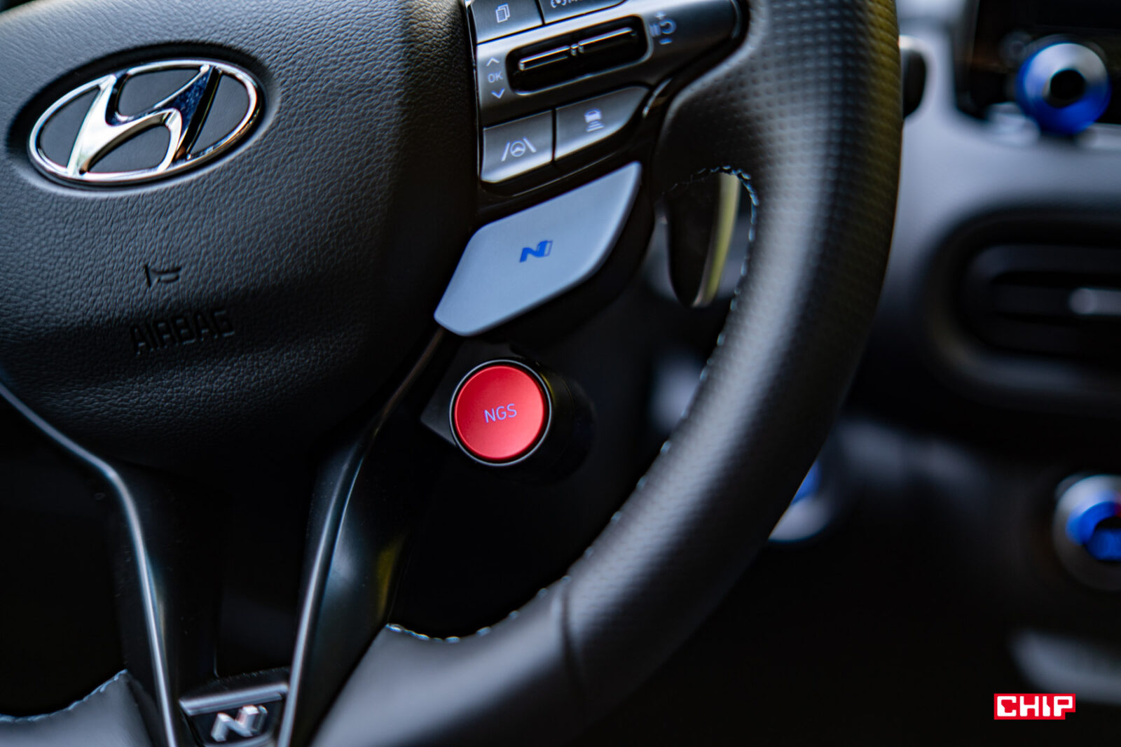 Jeśli i tego Wam za mało, możecie jednym przyciskiem całkowicie wyłączyć kontrolę trakcji. Dalej czegoś Wam brakuje? Dostępna jest funkcja Launch Control. Na deser dostajecie jeszcze jedną funkcję. Na kierownicy znajduje się ładny, czerwony przycisk z napisem NGS. Oznacza on funkcję N Grin Shift. Po jej uruchomieniu, osiągi silnika i skrzyni biegów będą wyżyłowane tak, aby zapewnić Wam największą moc, jaką Kona N może z siebie wykrzesać. Mówiąc kolokwialnie – dostaje porządnego kopa na 20 sekund. To świetna funkcja, ale jest na tyle obciążająca auto, że po jej użyciu, na ponowne uruchomienie trzeba poczekać minimum 40 sekund.