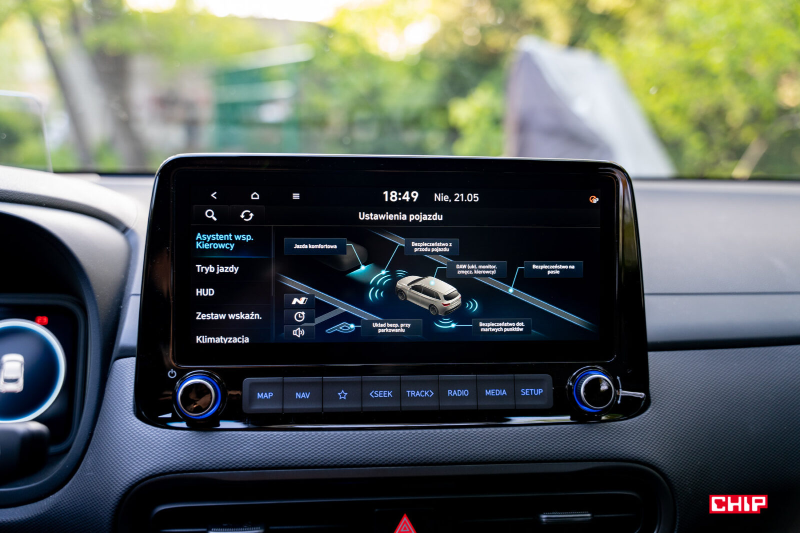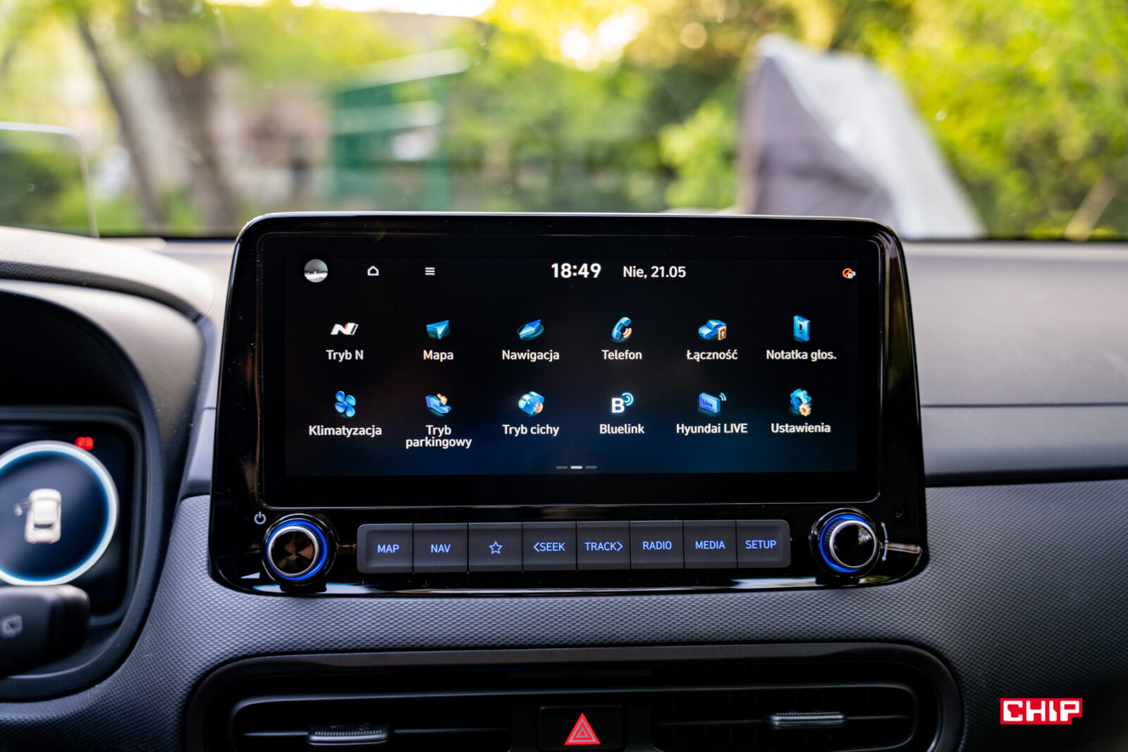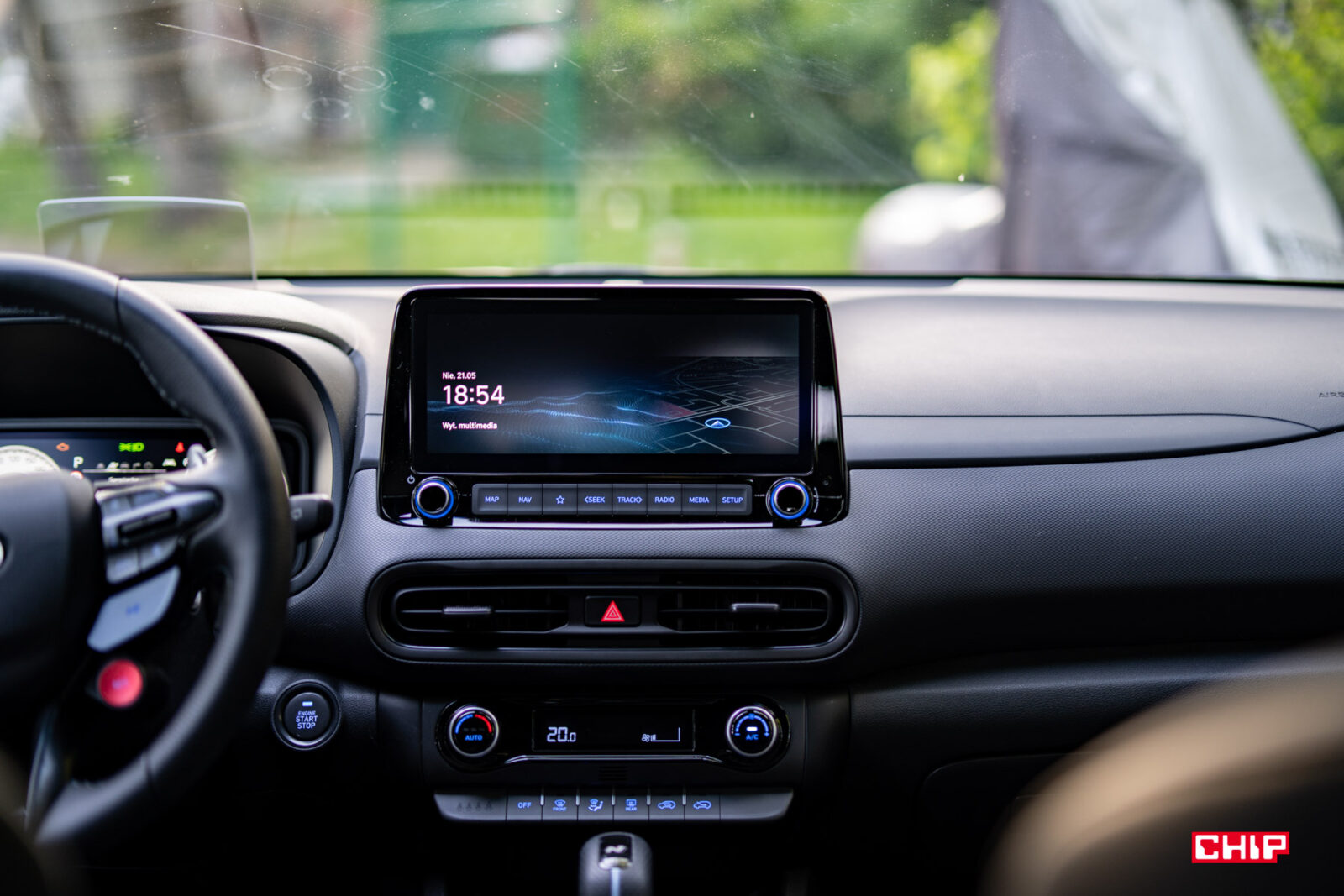 Hyundai Kona N ma bardzo przyzwoite multimedia, ale z głośników w trasie się nie nacieszymy