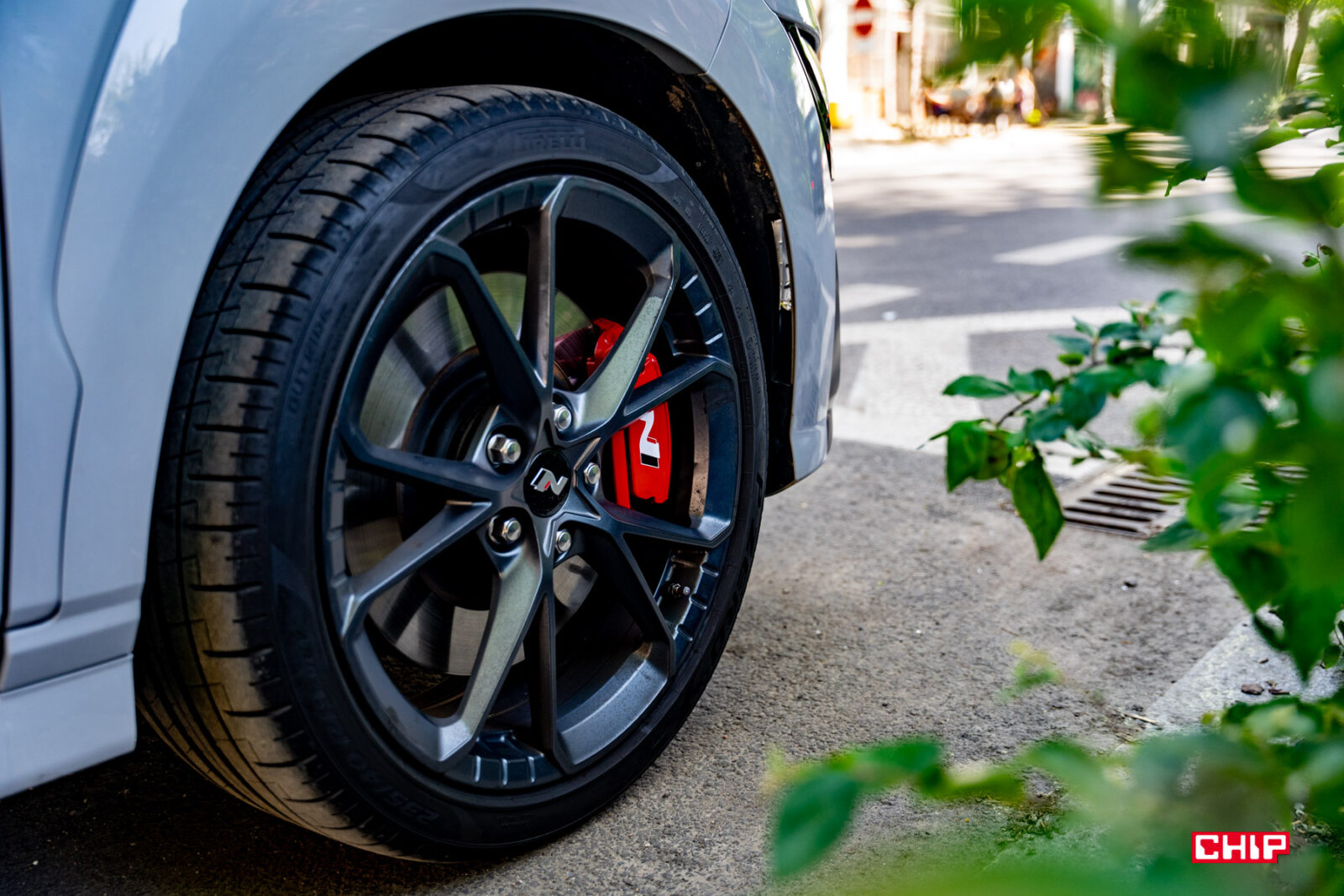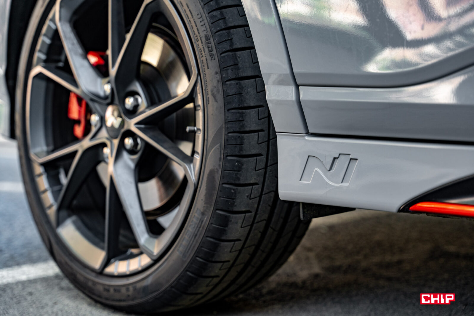 Z boku nie zabrakło agresywnych przetłoczeń, ale tu pierwsze skrzypce grają 19-calowe felgi, które chętnie odsłaniają czerwone zaciski hamulców z logo N.