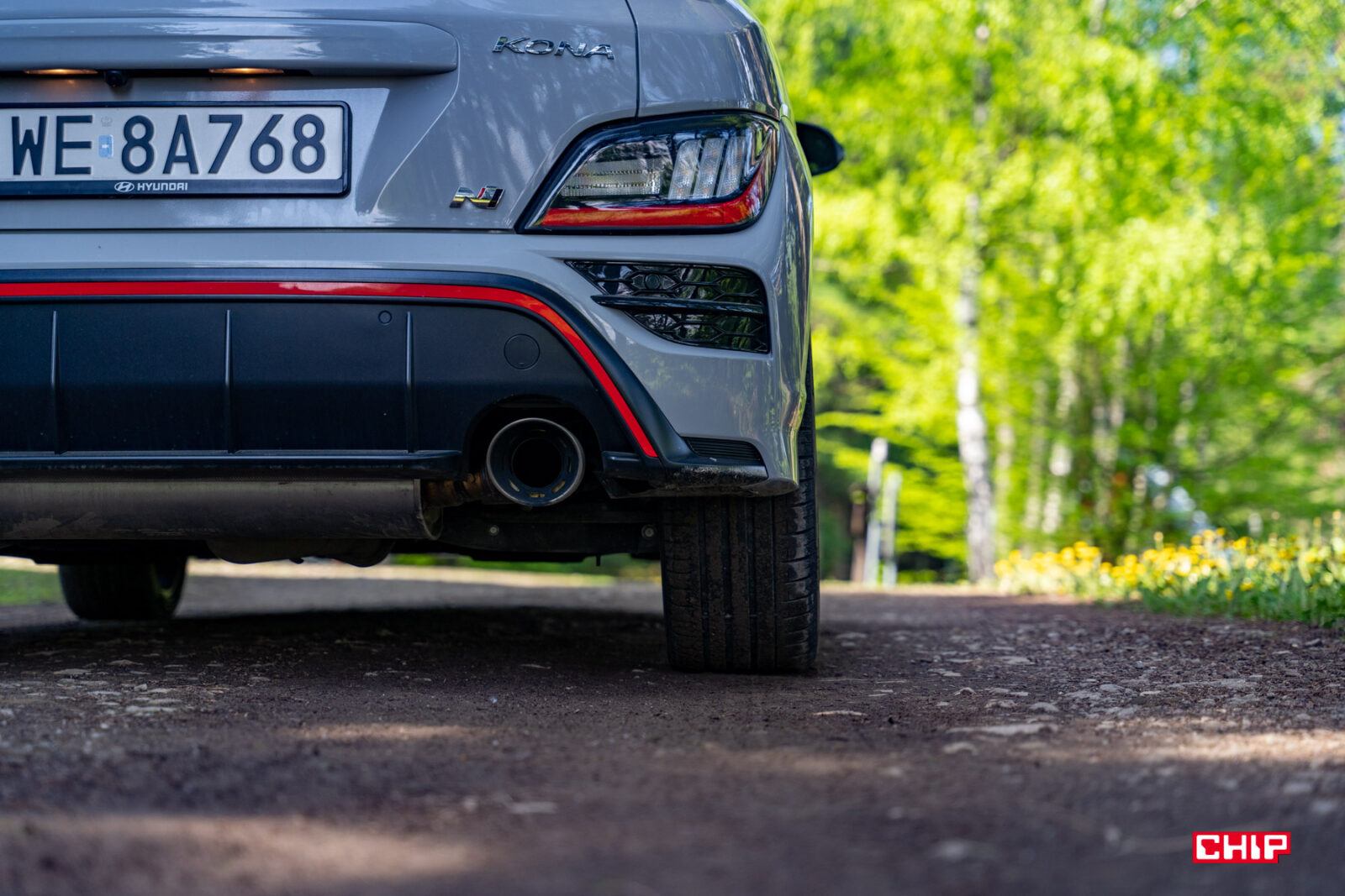 Z tyłu przy pierwszym spojrzeniu na pewno nie zwrócicie uwagi na spoiler dachowy z trójkątnym światłem stopu, który podkreśla Hyundai na swojej stronie internetowej. Tutaj pierwsze skrzypce grają duże końcówki wydechu i w żadnym wypadku to nie są atrapy. Wydech jest po prostu duży i do tego jeszcze wrócimy, ale tak, głośny.