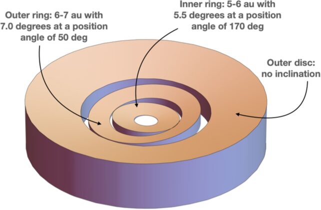 Być może nawet bardziej intrygująca okazała się obecność dysku protoplanetarnego. A w zasadzie dysków, bo wiemy o co najmniej trzech takich strukturach krążących wokół wspomnianej gwiazdy. W skład dysku wchodzi pył, który pewnego dnia najprawdopodobniej zostanie wykorzystany do utworzenia protoplanet, a wreszcie – planet takich jak Ziemi, Mars czy Jowisz.