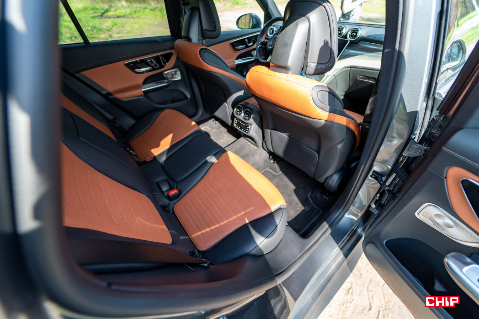 Choć wizualnie wnętrza są podobne, GLC 220d jest oczywiście znacznie bardziej przestronnym autem. I to pomimo ogromnego tunelu środkowego. Tu zwyczajnie jest dużo miejsca dla prawie każdego podróżującego. Prawie, bo siedzenie i oparcie na środkowym miejscu tylnej kanapy jest wybitnie twarde i niewygodne. Przy czterech osobach mamy tu wręcz limuzynowe warunki podróżowania.