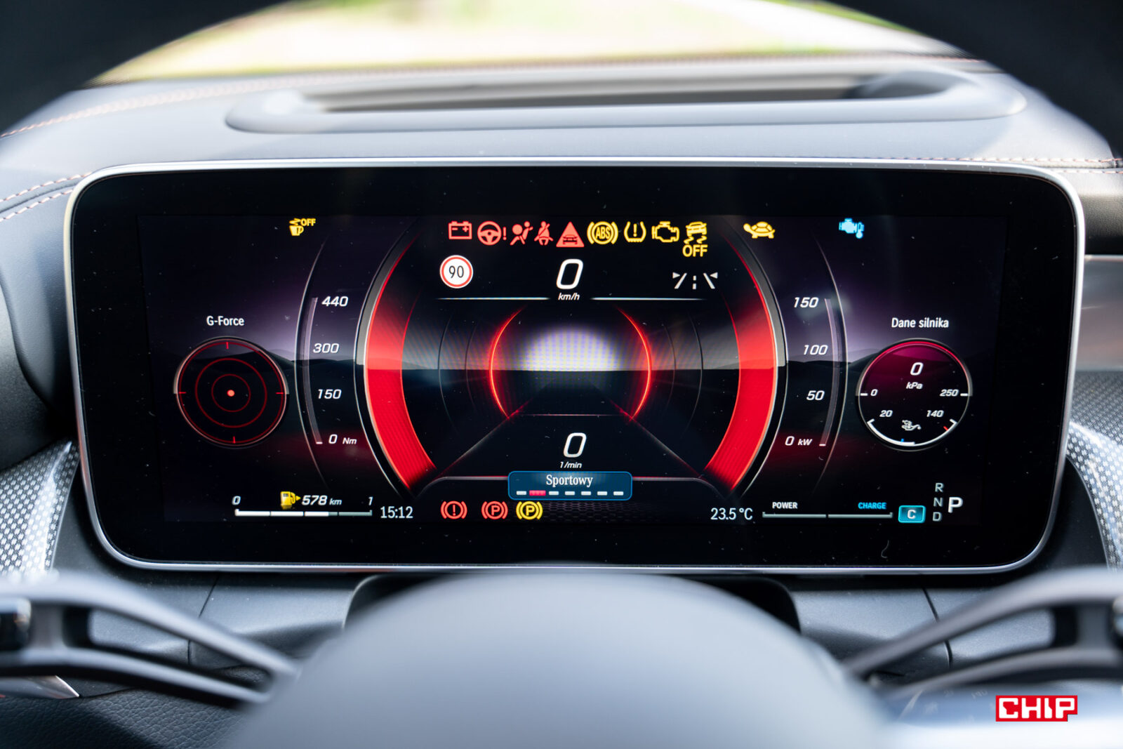 Ekran kierowcy pozwala na bardzo daleko idącą personalizację. Do wyboru mamy różne wyglądy, od bardzo protego, przez cyfrowy, po widok mapy i przeładowany informacjami widok sportowy i jazdy terenowej. Do nich możemy dorzucić dodatkowe informacje, jak choćby statystyki spalania, a całość uzupełnić kolejną porcją informacji wyświetlanych na head-upie.