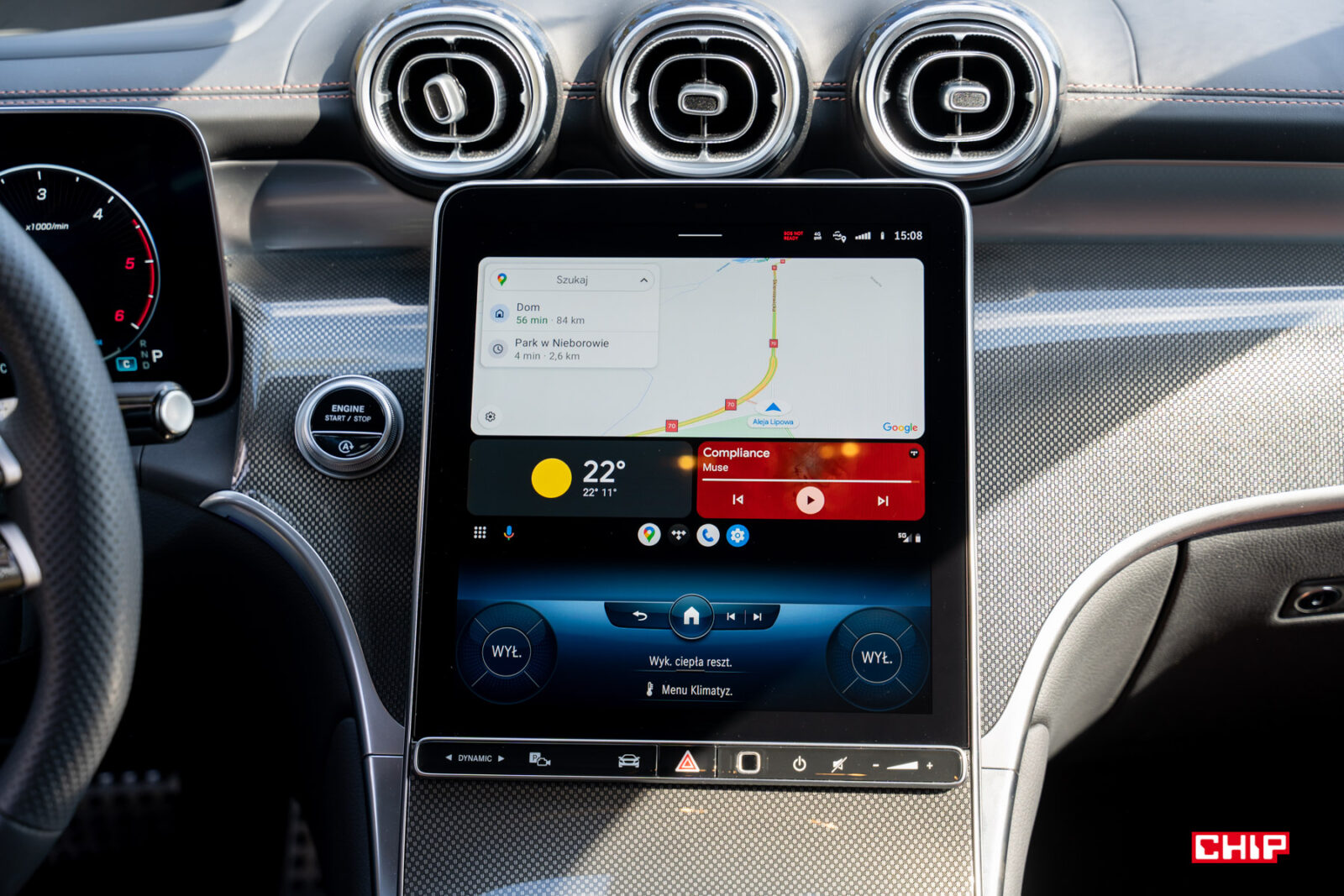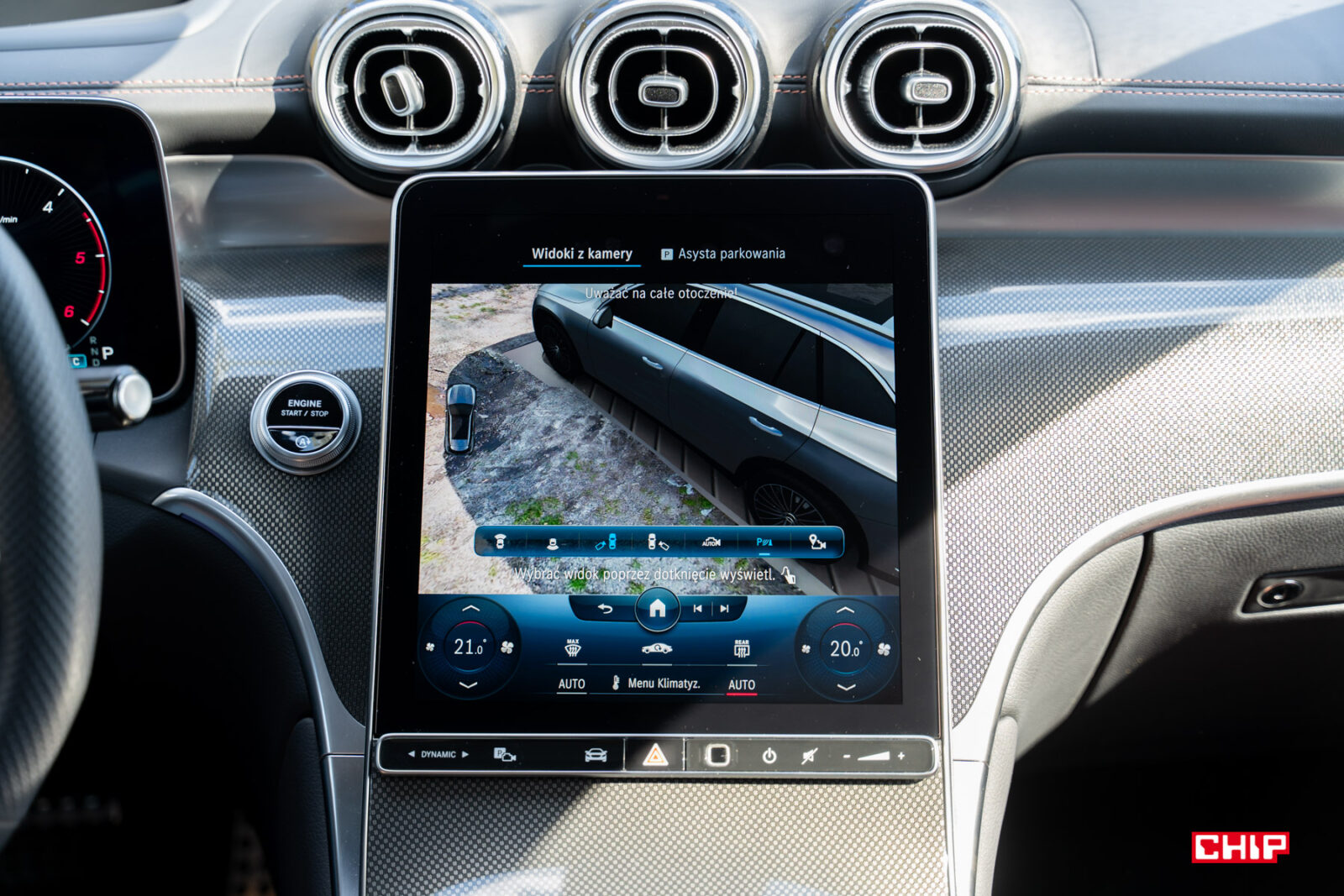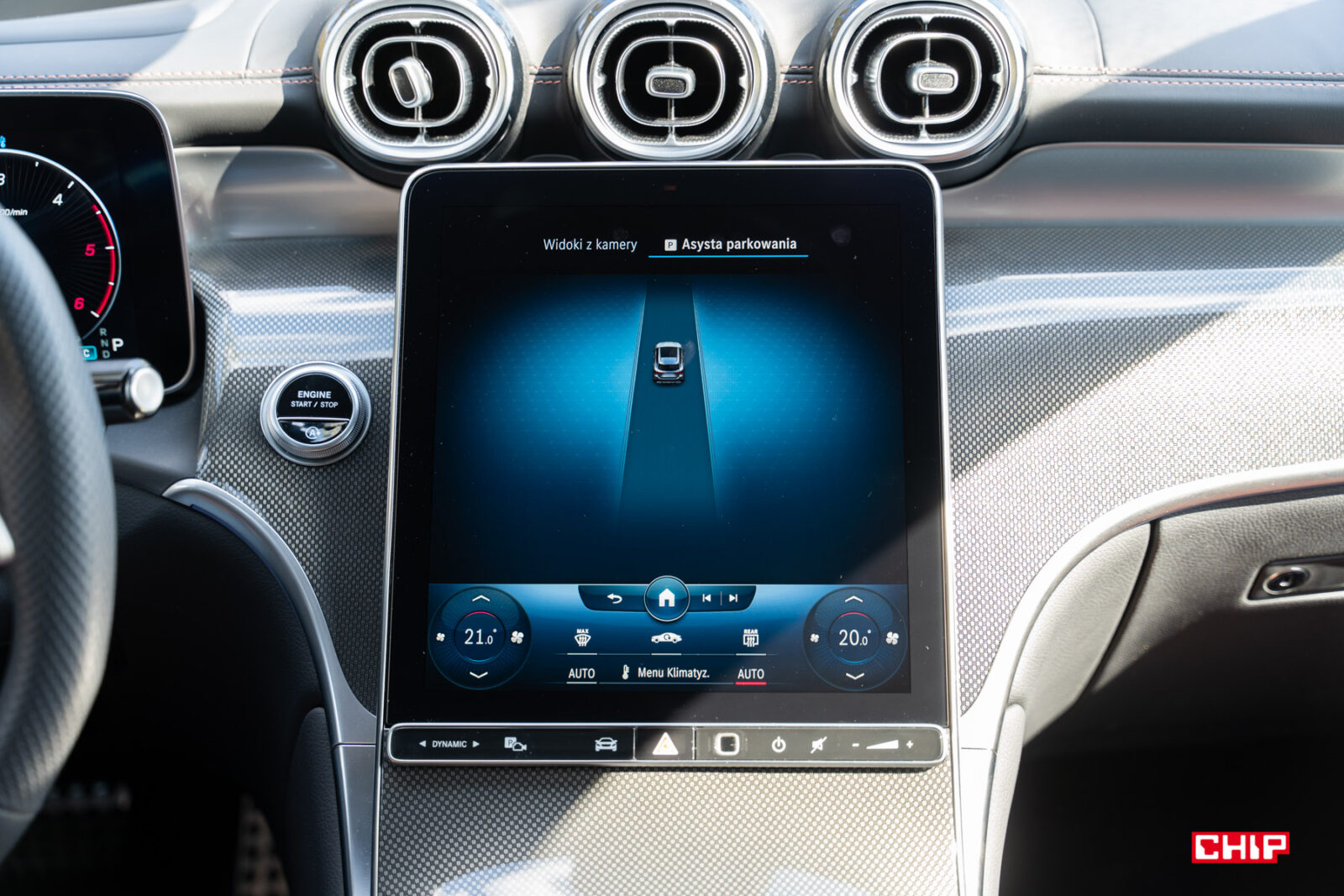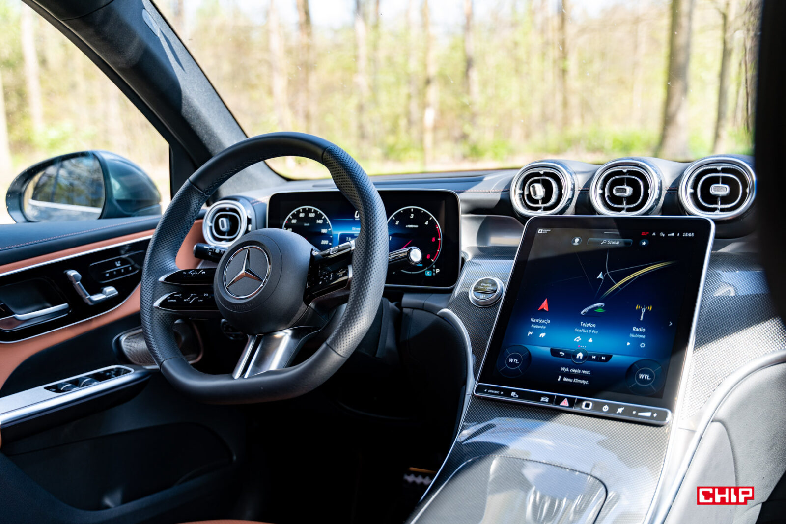 Poza dotykowym ekranem obsługa funkcji auta odbywa się za pomocą fizyczno-dotykowych przycisków pod wyświetlaczem głównym i na kierownicy. Te drugie wymagają nieco przyzwyczajenia, ale Mercedes wychodzi z tego elementu obronną ręką.