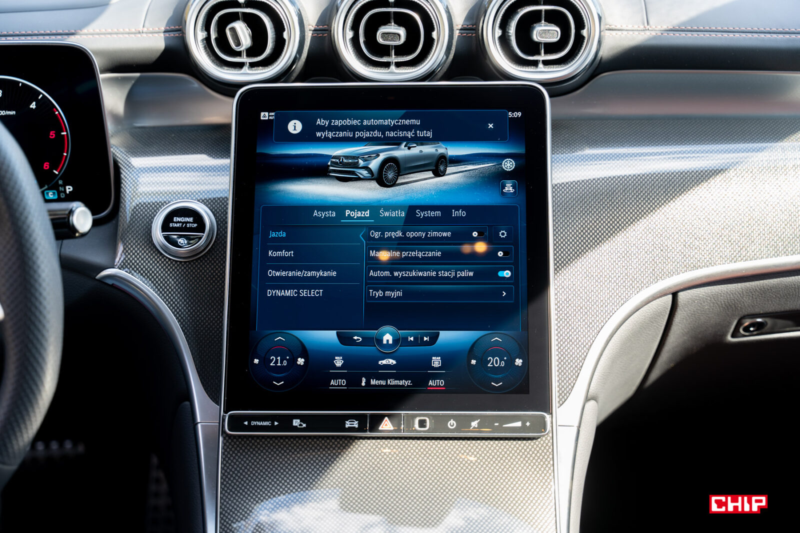Pomimo odświeżenia modelu i wyposażenia go w nowy ekran i najnowsze rozwiązania, GLC 220d w testowanym wariancie nie miał najnowszej wersji systemu MBUX. Choć nie brakuje mu funkcjonalności, na czele z bardzo komunikatywnym i pomocnym asystentem głosowym, mając porównanie z innymi nowymi modelami można się nieco zdziwić, że choć ma pierwszy rzut oka tak samo, to coś tu wygląda trochę… inaczej.
