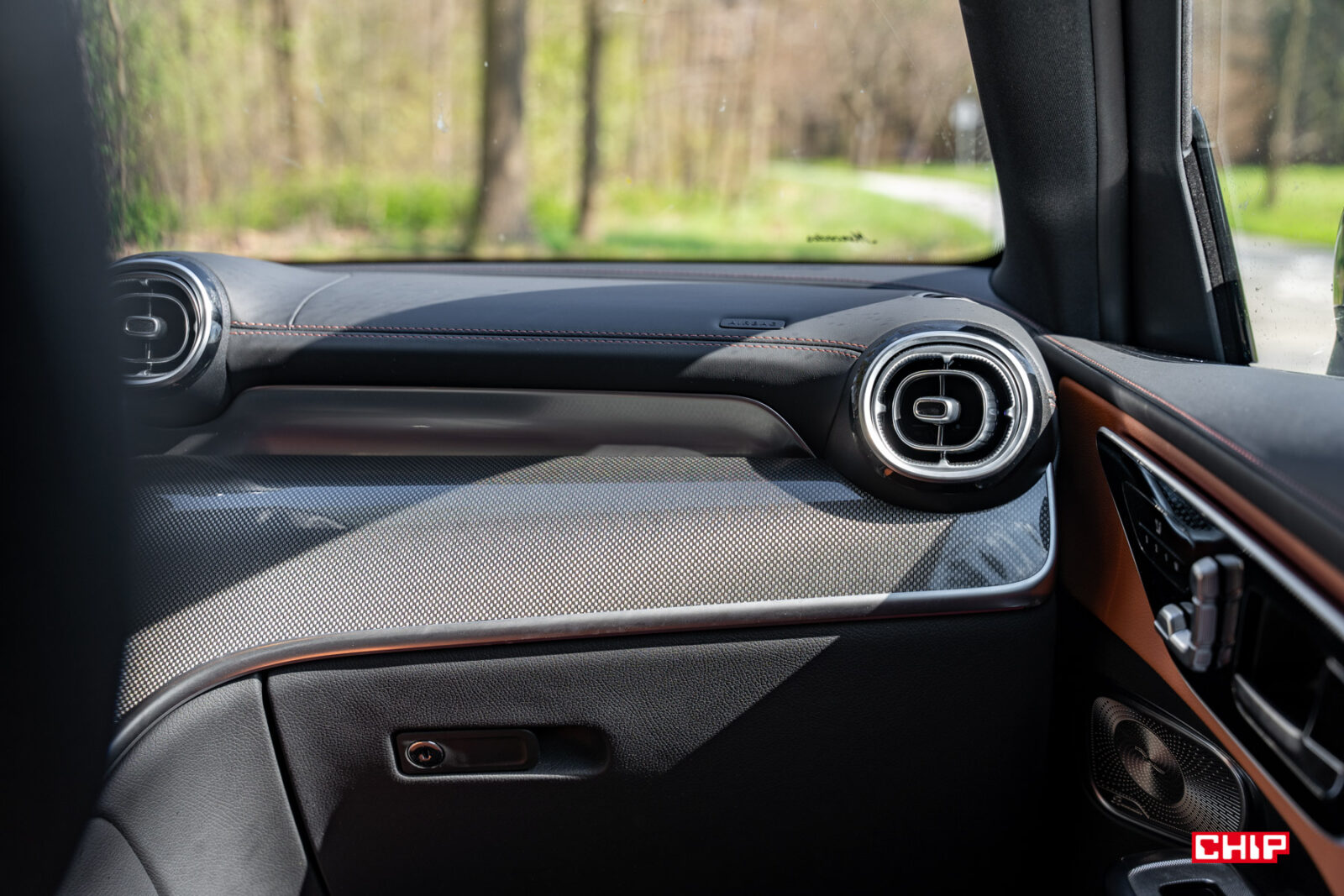GLC 220d pokazał mi, że Mercedes umie zrobić wnętrze bez piano black, którego za dużo było we wspomnianym C300d, jak i wielu innych modelach. Tutaj nie ma go wcale, ale użyty plastik, choć szalenie efektowny, nie jest idealny. Bardzo mocno odbija światło i w mocno słoneczne dni może przeszkadzać w trakcie jazdy, za to świetnie prezentuje się w nocy. Bardzo ciekawym elementem, pokazującym jak dużo daje niewielka zmiana wykończenia, są metalowe wstawki na drzwiach. W C300d były one gładkie i pokrywały się brzydkimi plamami, kiedy padały na nie krople deszczu. W GLC 220d ta powierzchnia jest chropowata i od razu problem znika.