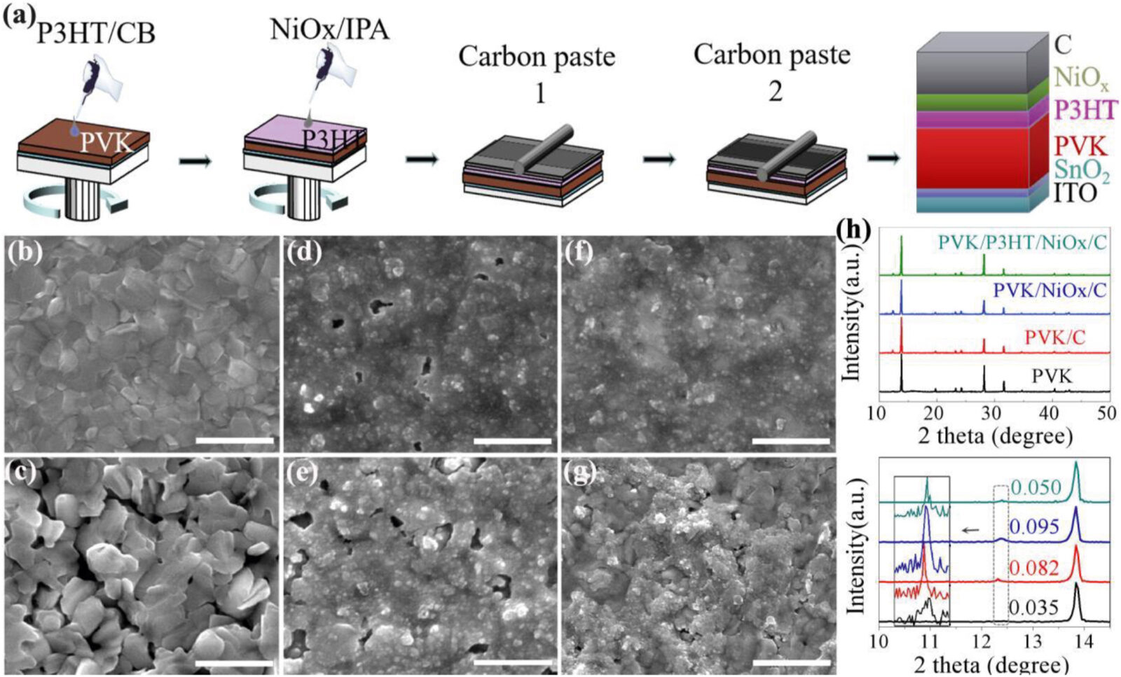 Niestety, jak się możemy domyślić, nawet węglowe kompozyty nie są idealne w takim zastosowaniu. Naukowcy dodają, że anody z tego materiału mają tendencję do zbytniego gromadzenia ładunku i zahamowują transport elektronów. Wobec tego postanowiono wzbogacić perowskitowe ogniwo o podwójną warstwę buforową do transportowania dziur. Składa się ona z polimeru zwanego politiofenem (P3HT). Osadzono go pomiędzy warstwą perowskitową a warstwą transportująca dziury (ang. HTL, hole transporting layer) składającą z tlenku niklu.
