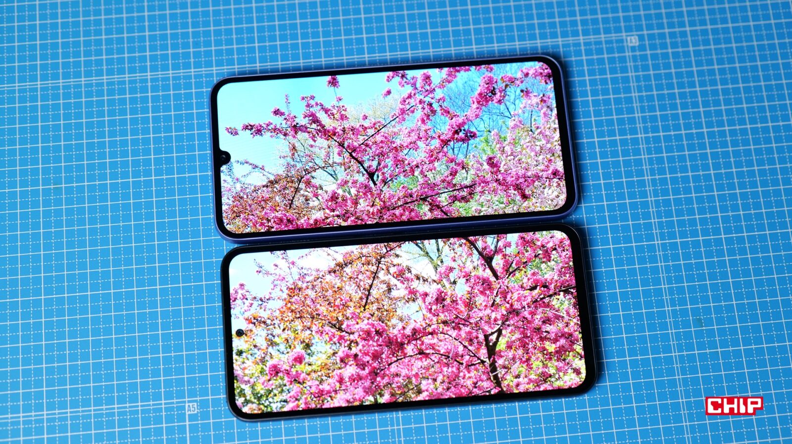 W większym Samsungu Galaxy A34 5G umieszczono panel o przekątnej 6,6 cala z “łezkowym” wcięciem. Mniejszy Samsung Galaxy A54 5G z ekranem o przekątnej 6,4 cala oferuje wcięcie w postaci pojedynczej kropki. Dalsze parametry ekranów są już identyczne. W obydwu przypadkach postawiono na rozdzielczość 2340×1080 pikseli i technologię Super AMOLED. Producent deklaruje jasność maksymalną na poziomie 1000 nitów w przypadku obydwu paneli, podobnie jak częstotliwość odświeżania ekranów do 120 Hz.