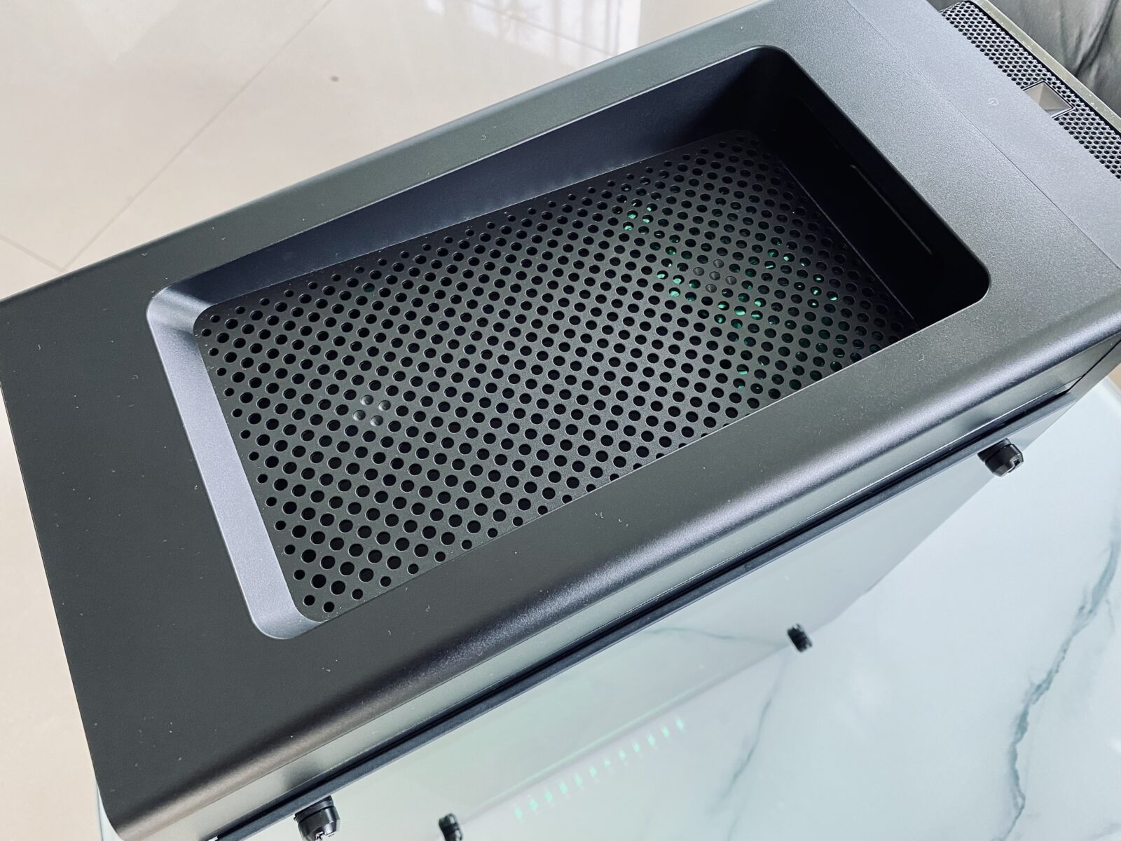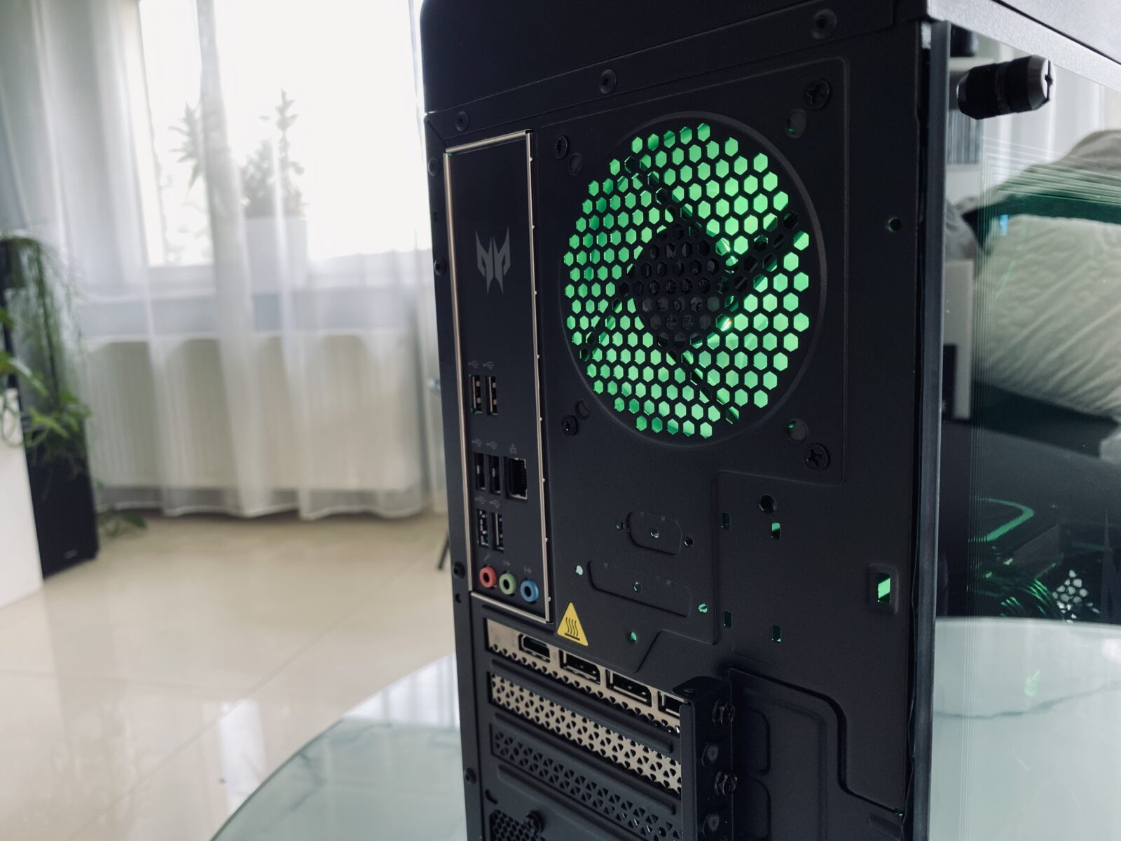 Podświetleniem zarządzamy z poziomu zainstalowanego już w komputerze oprogramowania PredatorSense. Cennym dodatkiem ze strony producenta jest za to dołączony do zestawu szklany bok obudowy. Możemy sami zdecydować czy będziemy mieli założoną metalową obudowę z otworami wentylacyjnymi czy szklaną taflę.