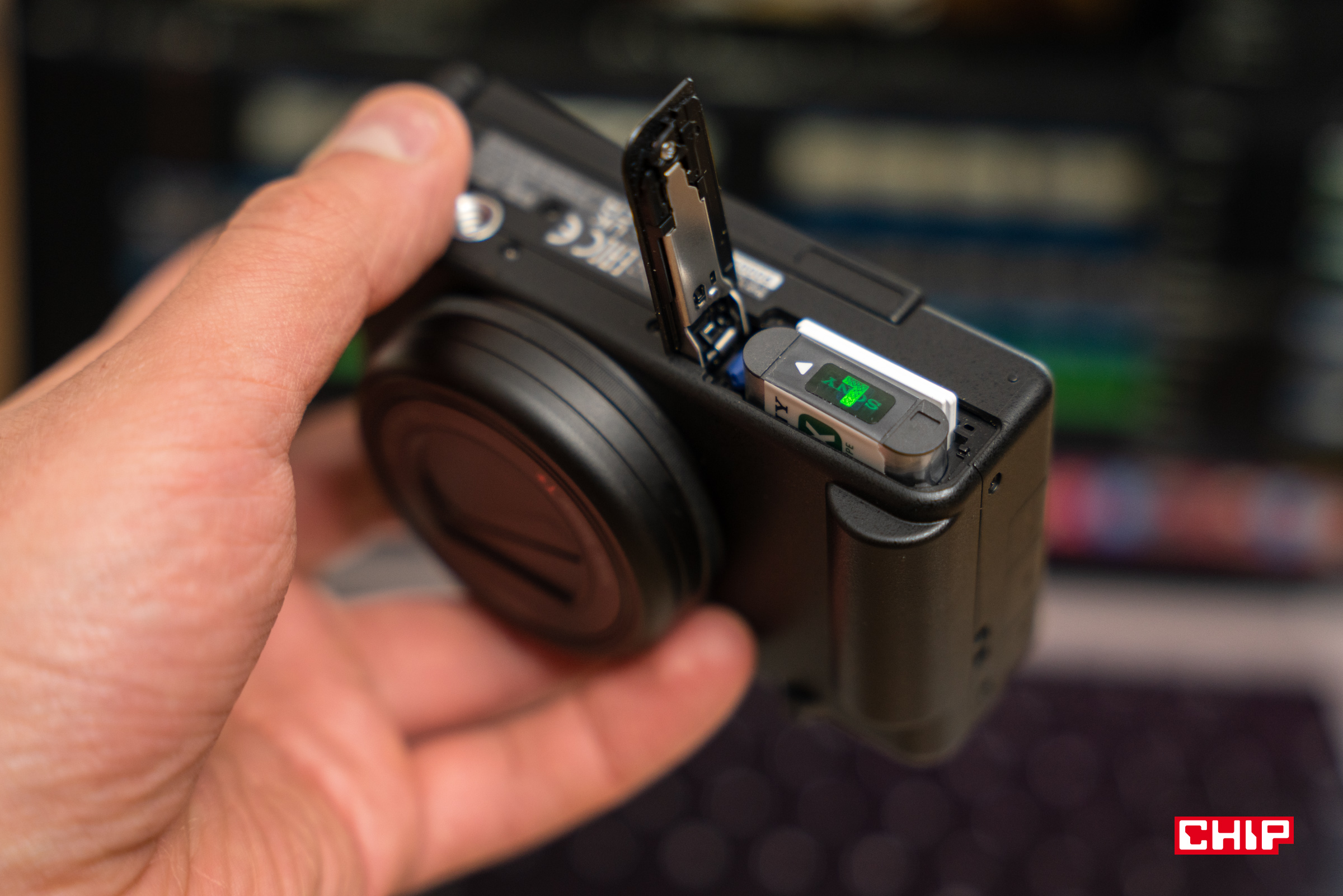 U dołu obudowy znajdziemy wejście na pojedynczy slot SDXC/SDHC oraz akumulator NP-BX1, który ma rzekomo starczyć na max 45 minut nagrywania i max 250 zdjęć, ale nie potrafię w to uwierzyć, skoro już po zrobieniu 100 zdjęć i 15 minutach nagrywania wideo 4K została mi jedna kreska energii.