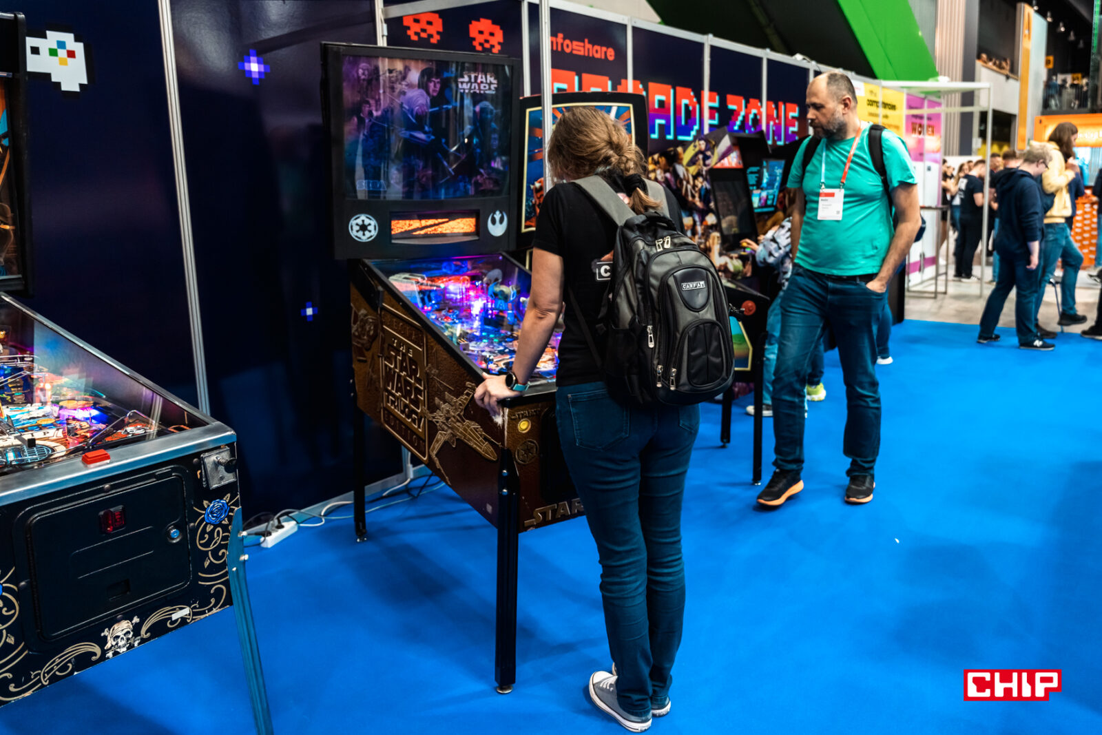 Przechadzając się po halach można było natrafić na mnóstwo ciekawych punktów. W tym roku zdecydowanie najwięcej uwagi przyciągało jednak kilka konkretnych stoisk; sekcja jednego z partnerów, the:protocol, sekcja z wystawą Mercedesa, gdzie można było zobaczyć na żywo nowego EQS-a, oraz sekcja… gier salonowych. Ilekroć przechodziłem przy maszynach do pinballa mogłem na nie popatrzeć góra przez 30 sekund, bo zaraz ktoś je zajmował i zaczynał grać.