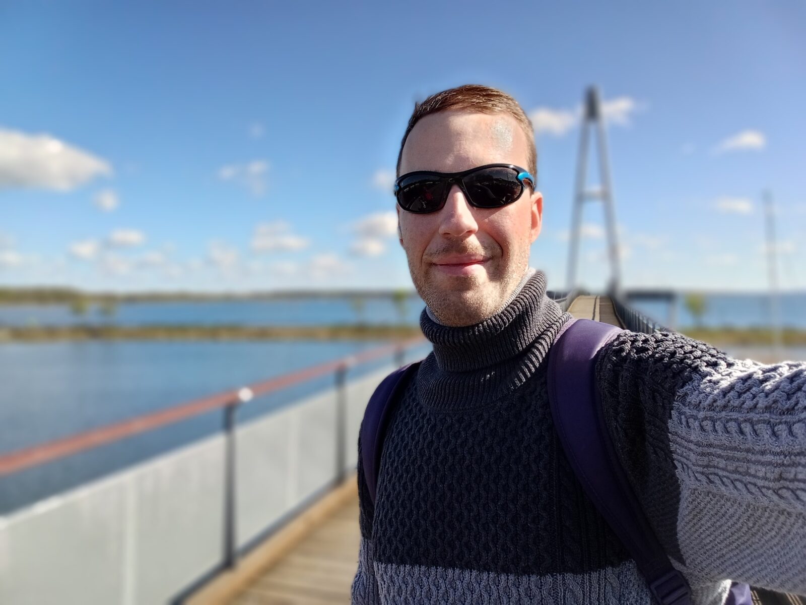 Przedni aparat to 8 Mpix matryca z optyką o jasności f/2.0. Jakość zdjęć za dnia jest bardzo dobra – są szczegółowe i mają naprawdę niezłą rozpiętość tonalną. Tryb portretowy również nie zawodzi.