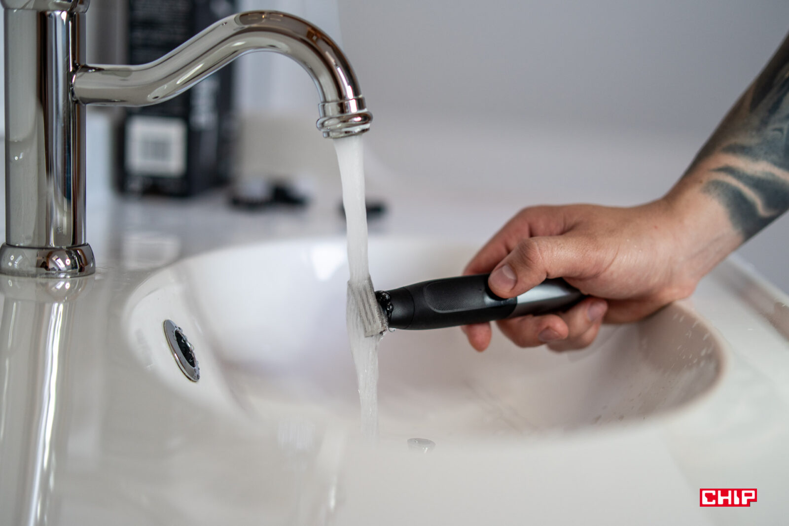 … wystarczy włożyć maszynkę pod bieżącą wodę. Wodoodporna konstrukcja pozwala na szybkie i proste czyszczenie.
