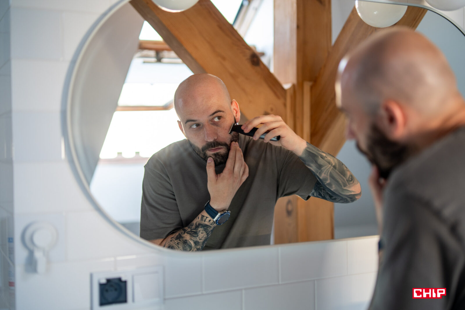 Zacznijmy od tego, po co mi golarka? Jeśli mówimy o stricte urządzeniu do codziennego golenia zarostu to… do niczego. Nie zdziwię się, jeśli osób z wymaganiami podobnymi do moich jest całkiem sporo. Golę się stosunkowo rzadko. Przede wszystkim potrzebuję trymera do skrócenia zarostu, ale też klasycznej golarki do ogolenia miejsc poza wyznaczoną linią włosów. Trymera używam też do golenia torsu i pleców, i tak, nie ma co się wstydzić Panowie. Szczególnie jeśli, podobnie jak mi, zdarza Wam się źle znosić wyższe temperatury, to jest to naprawdę duże ułatwienie. Oprócz tego golę regularnie głowę oraz mniej regularnie ręce. Zawsze powtarzam, że gdybym chciał mieć na rękach kobietę z wąsem i czaszkę z grzywką, to wytatuowałbym kobietę z wąsem i czaszkę z grzywką. Więc bez naturalnych włosów moje tatuaże prezentują się korzystniej.