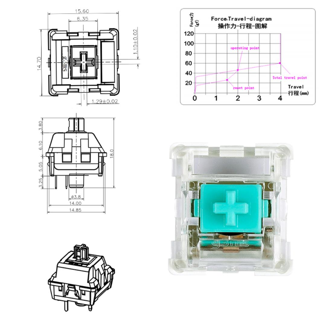 Wspomniane przełączniki wywodzą się ze stajni g3ms i noszą nietypową nazwę Sapphire, która nie mówi nam nic. W gruncie rzeczy są to jednak doskonale nam znane liniowe przełączniki o dynamice podobnej do tradycyjnych Redów (4-mm droga pracy, aktywacja na 2 mm i siła potrzebna do aktywacji rzędu 50 gramów). Jedyne, co w ich przypadku mnie niepokoi, to zgłaszane marginesy błędu rzędu 0,5 lub 0,4 mm, które stanową kolejno 25- i 10-procentowe odchyły. Na moje oko takie coś sugeruje ryzyko rychłych problemów z przełącznikami, ale musimy uwierzyć producentowi na słowo i wierzyć, że g3ms Sapphire rzeczywiście wytrzymują 50 mln aktywacji.