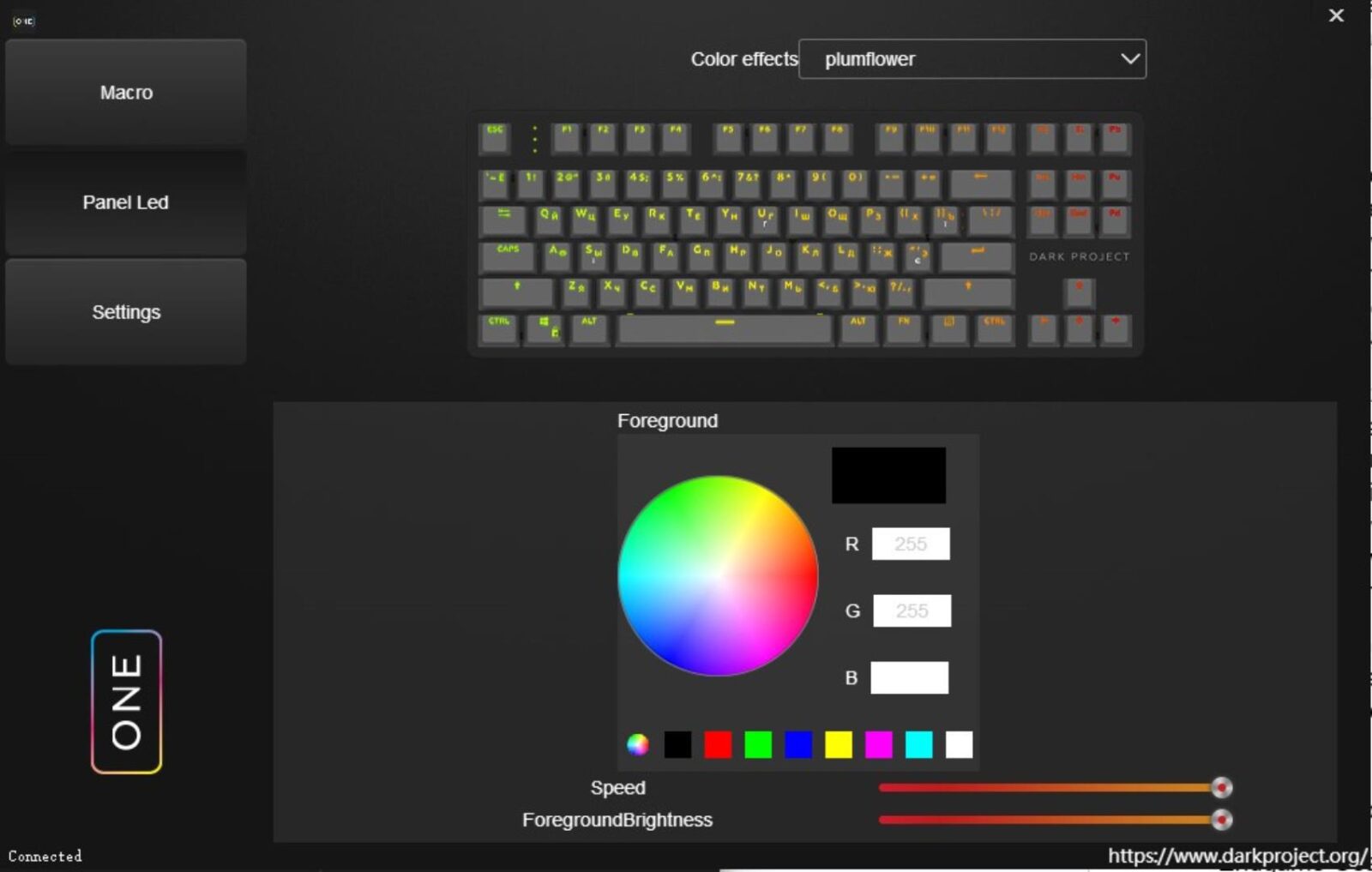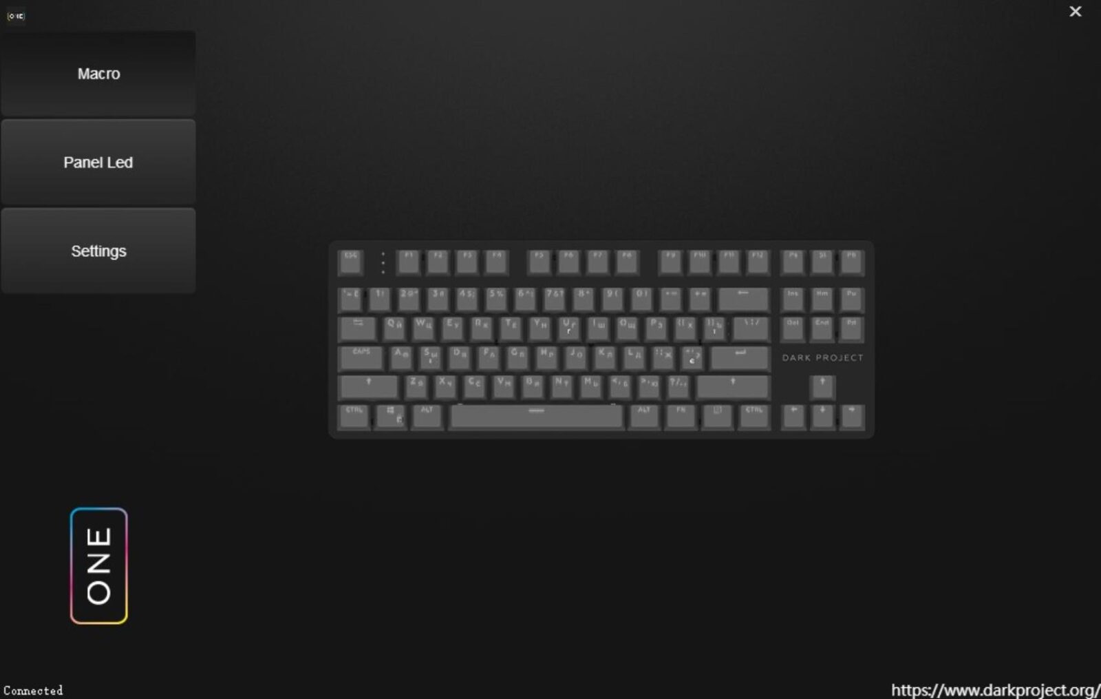Oprogramowanie DPO DK87 Skeleton V2 było trudno znaleźć, bo pudełko sugerowało, że model to dokładnie Dark Project One KD87A, więc po sprawdzeniu kilku wersji oprogramowania dostępnego na stronie producenta, wreszcie dobiłem się do odpowiedniej aplikacji. Tej nie trzeba na szczęście instalować i bardzo dobrze, bo w wielu miejscach wygląda mniej więcej tak, jakby została zrobiona przez studenta na stażu. Wiem co mówię, sam nim jestem i też co nieco programuję.