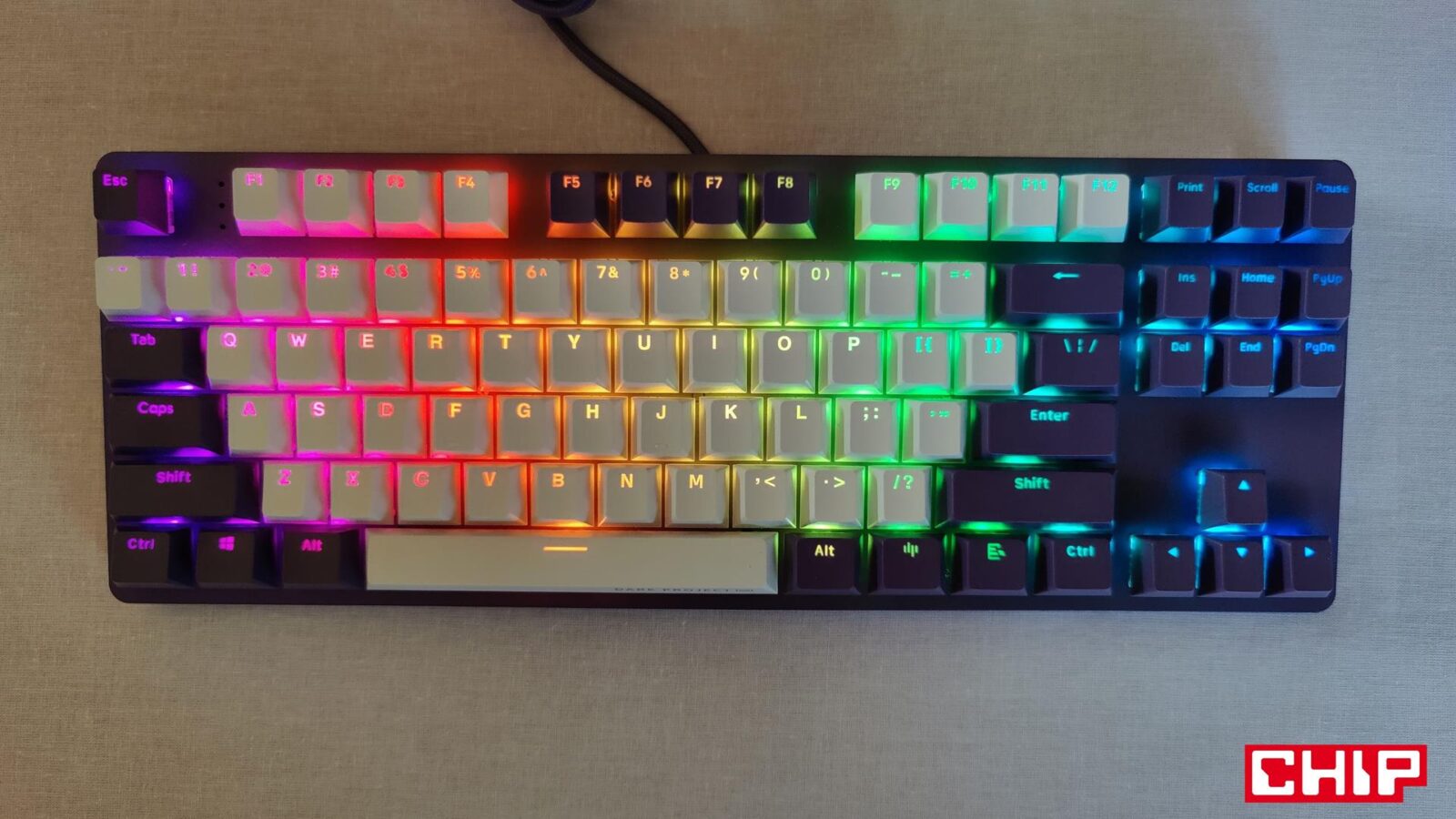 Nie ma co owijać w bawełnę – gdyby pozbawić ten model charakterystycznego połączenia kolorystycznego, to nie wzbudzałby sobą tak wielkiego zainteresowania. Czerń i biel znudziła już zapewne niejednego, a samo podświetlenie klawiszy nie jest w stanie przełamać tej monotonii. Na całe szczęście wielu producentów wprowadza na rynek klawiatury albo z przemalowaną obudową, albo samymi nakładkami na klawisze i słusznie – zawsze to jakiś powiew świeżości, a nie kolejna taka sama klawiatura TKL lub 60% z przełącznikami Kailh, Gateron lub Omron.
