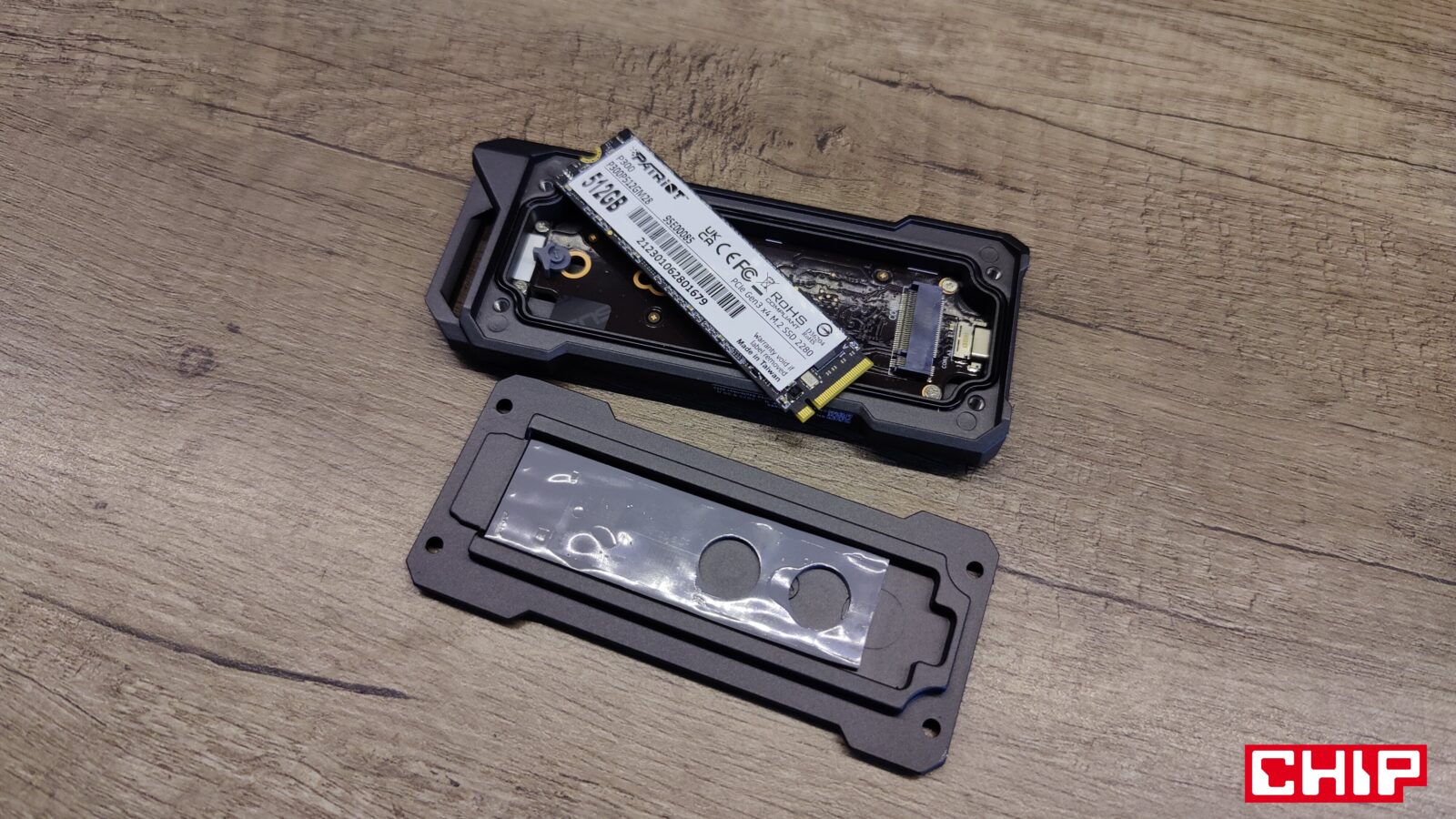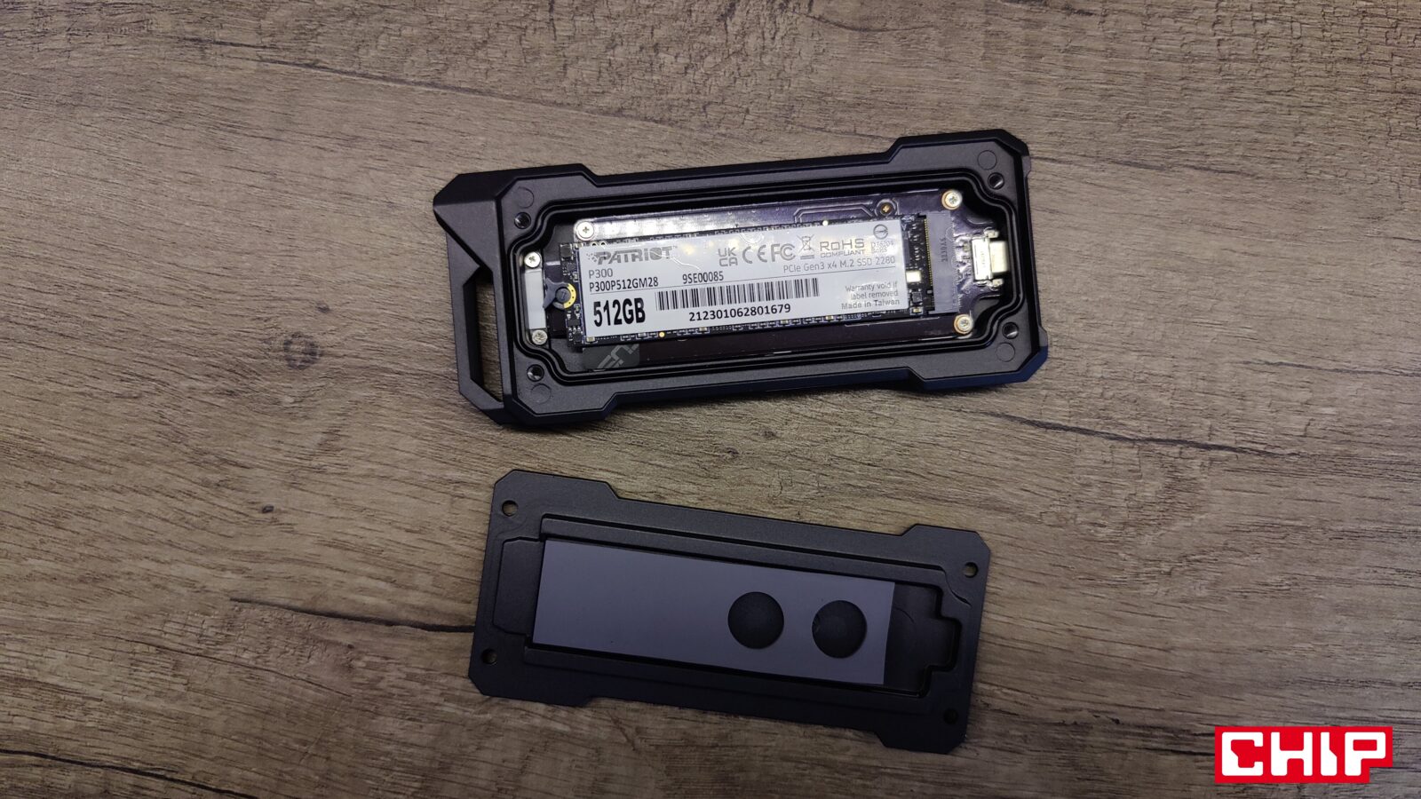 Oznacza to, że kupując TUF Gaming A1 w duecie z dyskiem SSD Patriot P300, nic nie stoi na przeszkodzie, żebyście w prosty sposób wymienili go na inny kompatybilny model na złącze M.2 w formacie 2242, 2260 i 2280 (NVMe lub SATA) o pojemności do 2 TB. Co to oznacza? Ano to, że jeśli oczekujecie najwyższej wydajności od takiego sprzętu, możecie kupić 2-terabajtowego SSD nawet na PCIe 4.0×4, wsadzić go do stacji roboczej, wykonywać na nim obciążające operacje, a po skończonej pracy wsadzić go z powrotem do obudowy, używając mechanizmu zatrzaskowy Q-Latch w miejscu tradycyjnej śrubki.