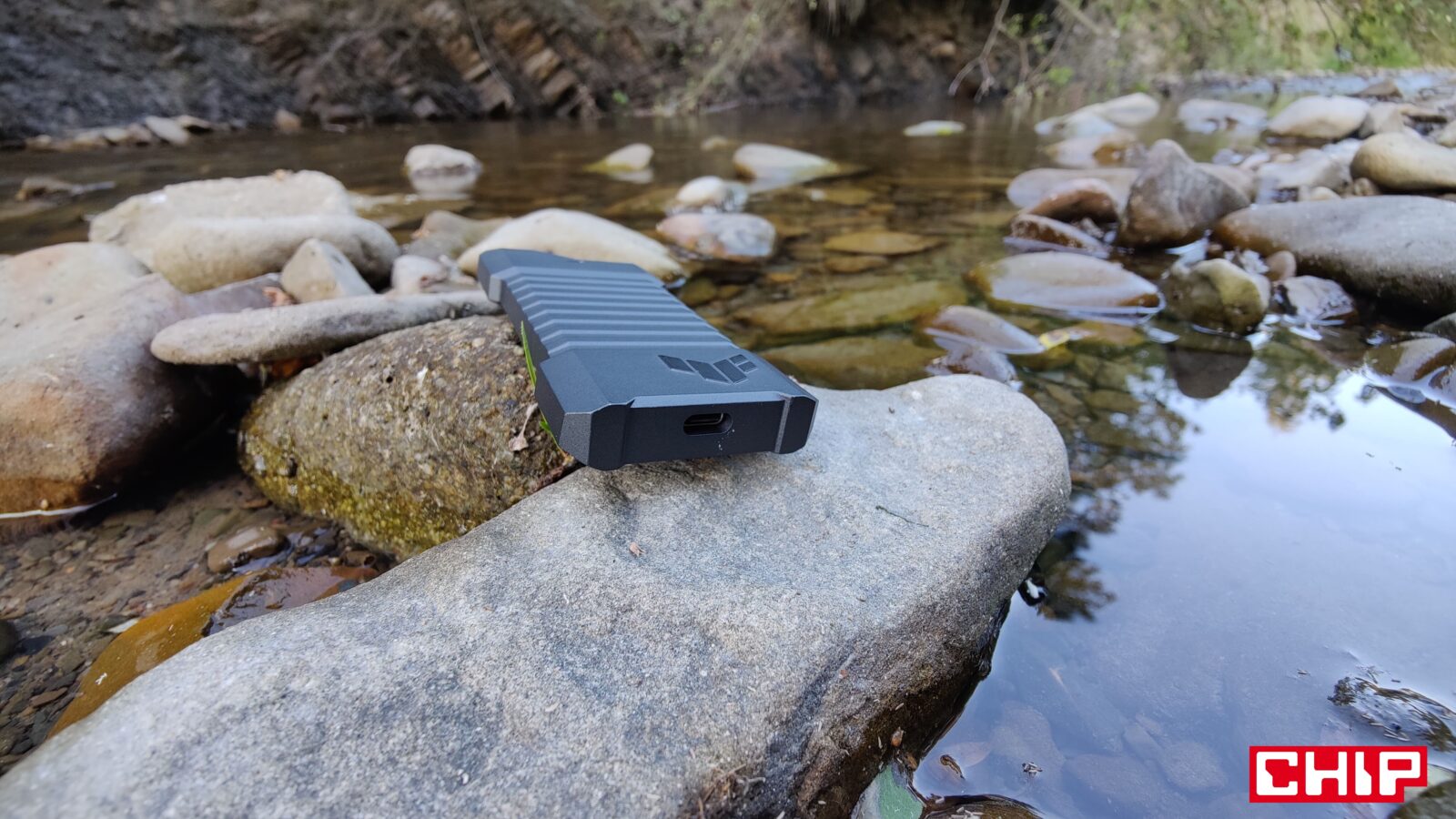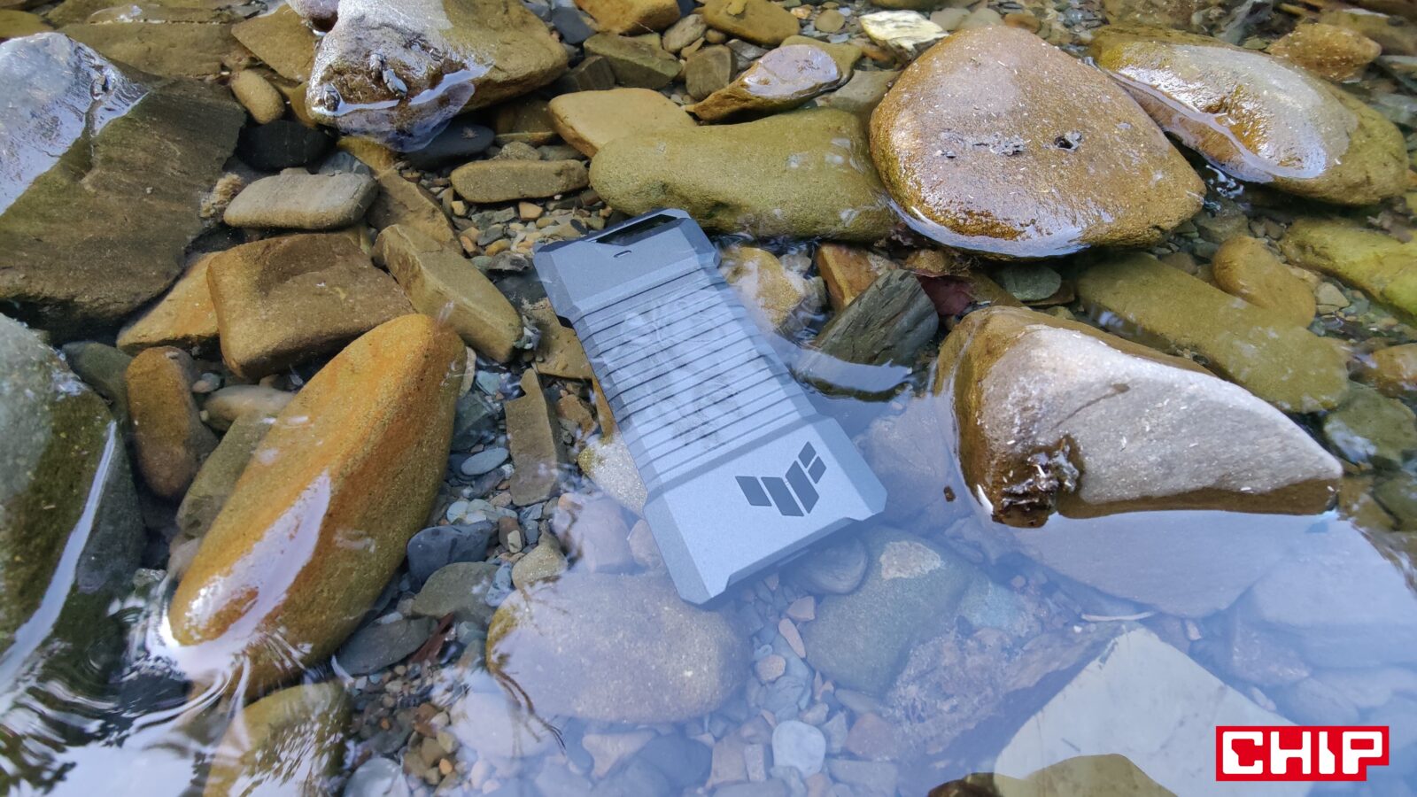 Poświęcicie tym wprawdzie część wydajności, ale za to zapewnicie sobie dostęp do zgromadzonych danych z poziomu praktycznie każdego sprzętu wyposażonego w złącze USB-C. Tyczy się to więc laptopów, konsol, handheldów, a nawet smartfonów obsługujących odpowiednie technologie. Jednak obudowa TUF Gaming A1 wyróżnia się czymś zupełnie innym, bo mimo swojego eleganckiego formatu i wykonania, wyróżnia się spełnianiem kryteriów standardów MIL-STD-810H 516.8 i IP68, co gwarantuje wam nie tylko sprzęt na lata, ale też pewność, że wasz dysk i tym samym dane, będą bezpieczne nawet wtedy, kiedy z bagażem stanie się coś złego, a relaksująca praca nad jeziorem skończy się nurkowaniem w poszukiwaniu dysku.